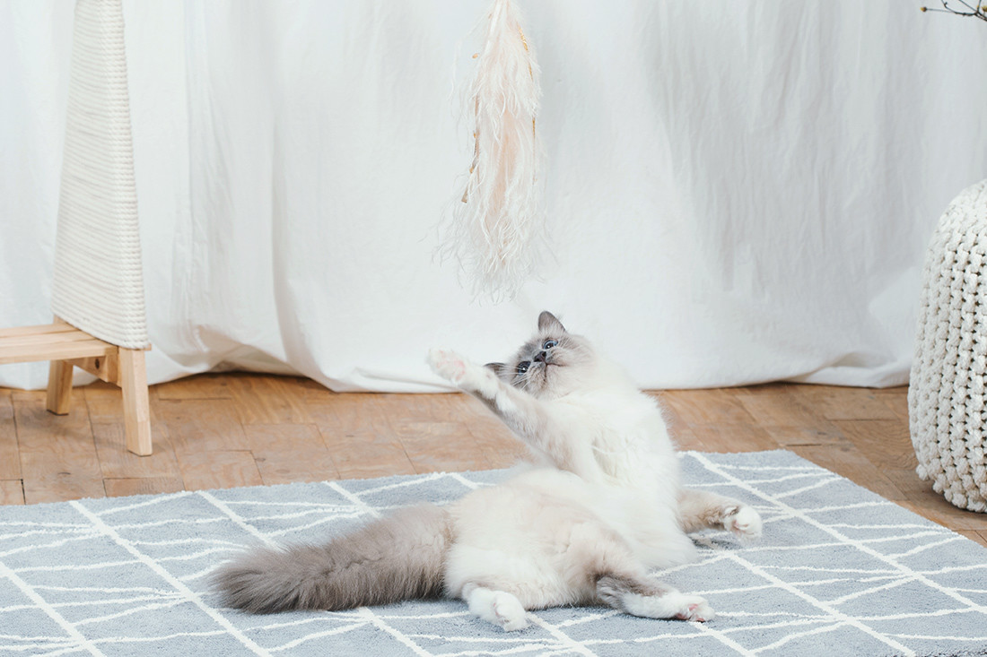 고양이가 끈, 털, 방울 등 장난감을 삼키지 않도록 항상 주의해주세요.