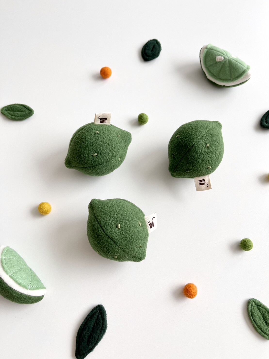레몬,라임,만다린으로 구성된 시트러스 고양이 장난감입니다.
