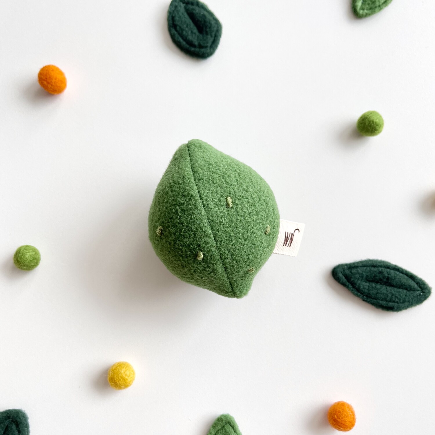 상큼한 컬러와 말랑말랑한 촉감, 스티치의 디테일, 바스락 거리는 잎과 줄기는 흥미를 유발합니다.