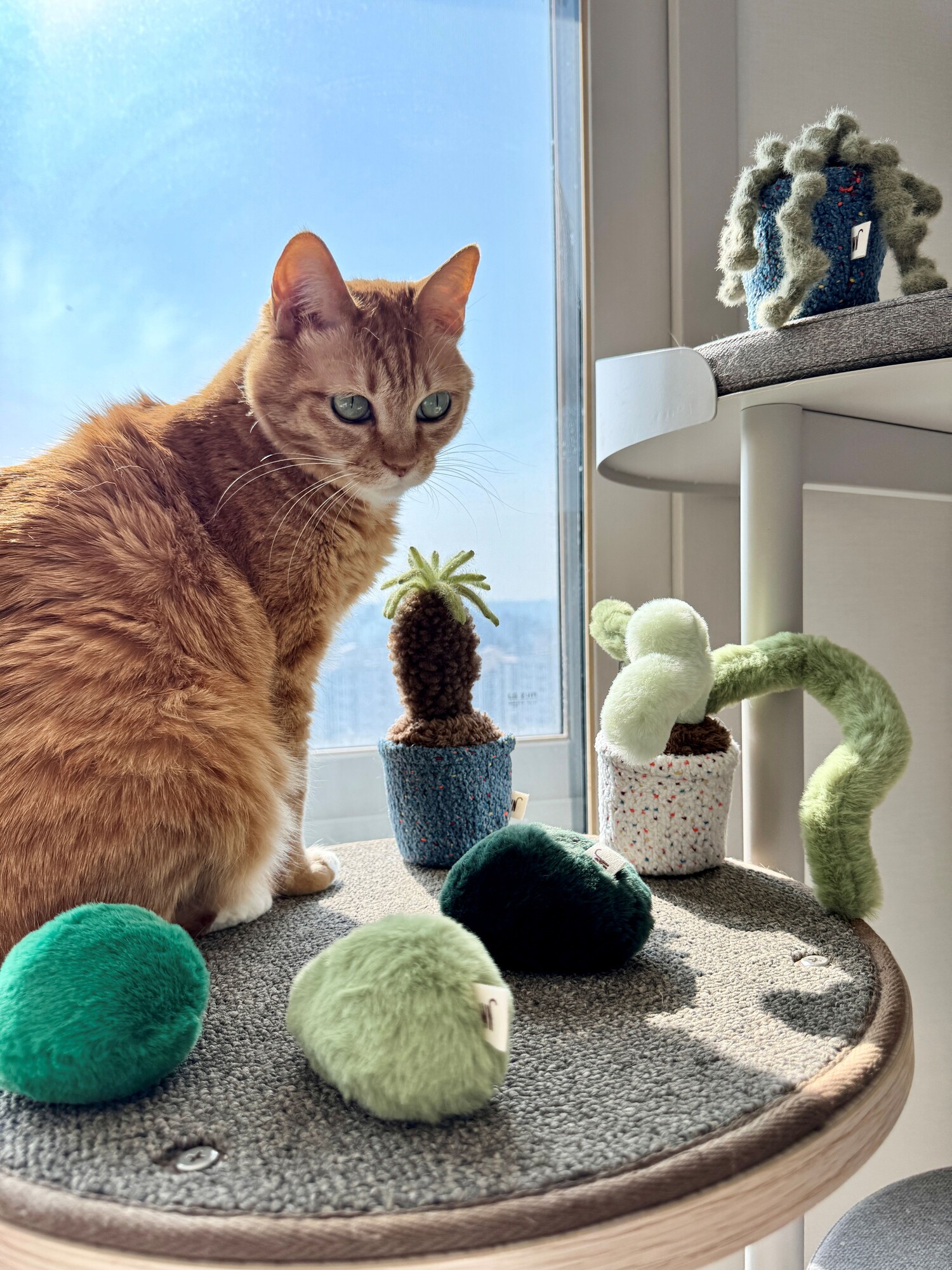 흙 부분은 국내산 유기농 캣닢 또는 마따따비 잎이 들어가고 화분 속에 여분 파우치를 넣어서 가루 날림없이 사용할 수 있습니다.
