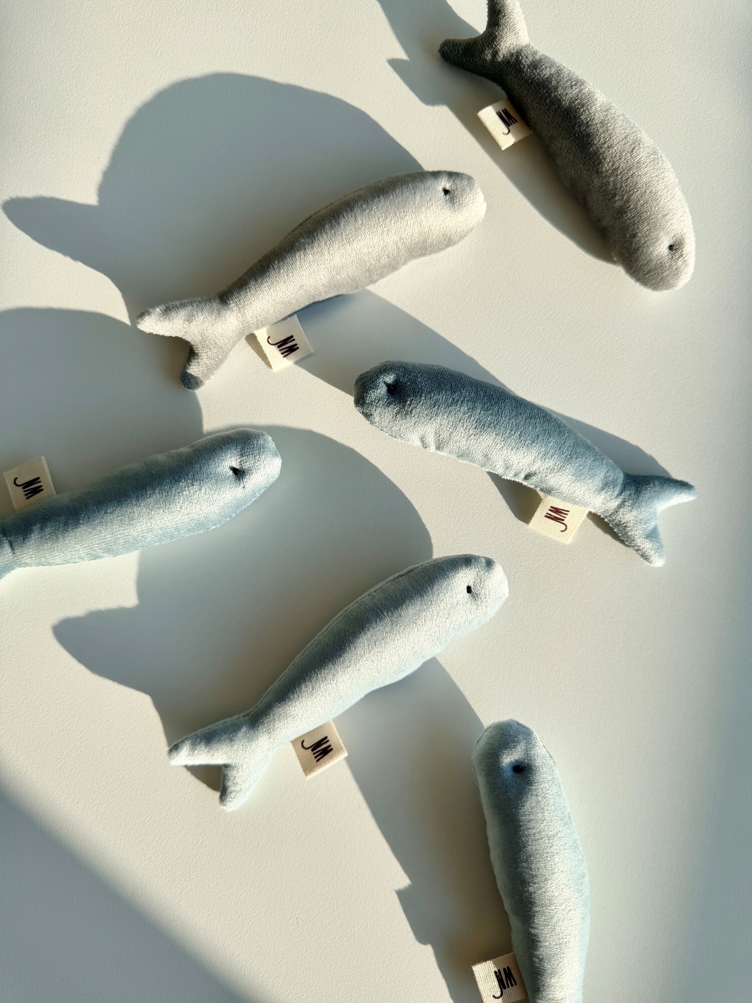 서로 다른 컬러의 멸치 세개가 한 세트로 구성되어 있습니다.