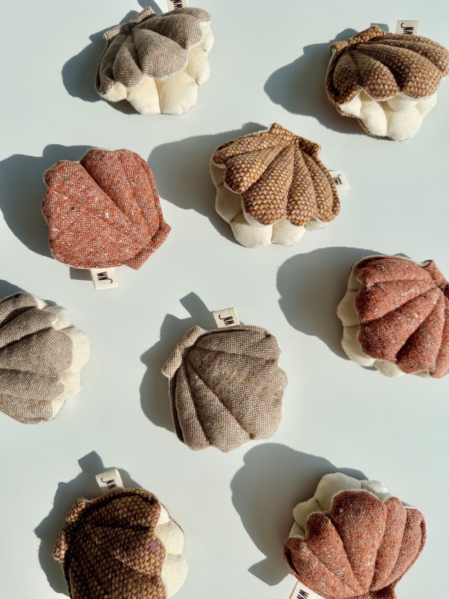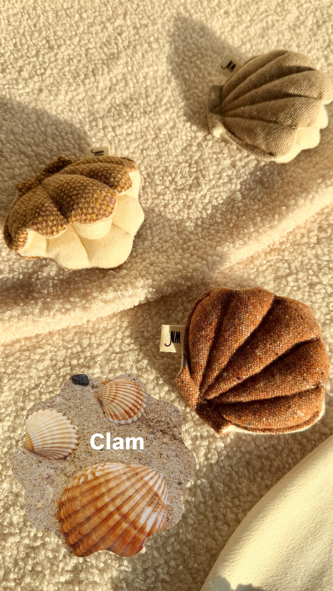 서로 다른 컬러의 조개 세개가 한 세트로 구성되어있습니다.
