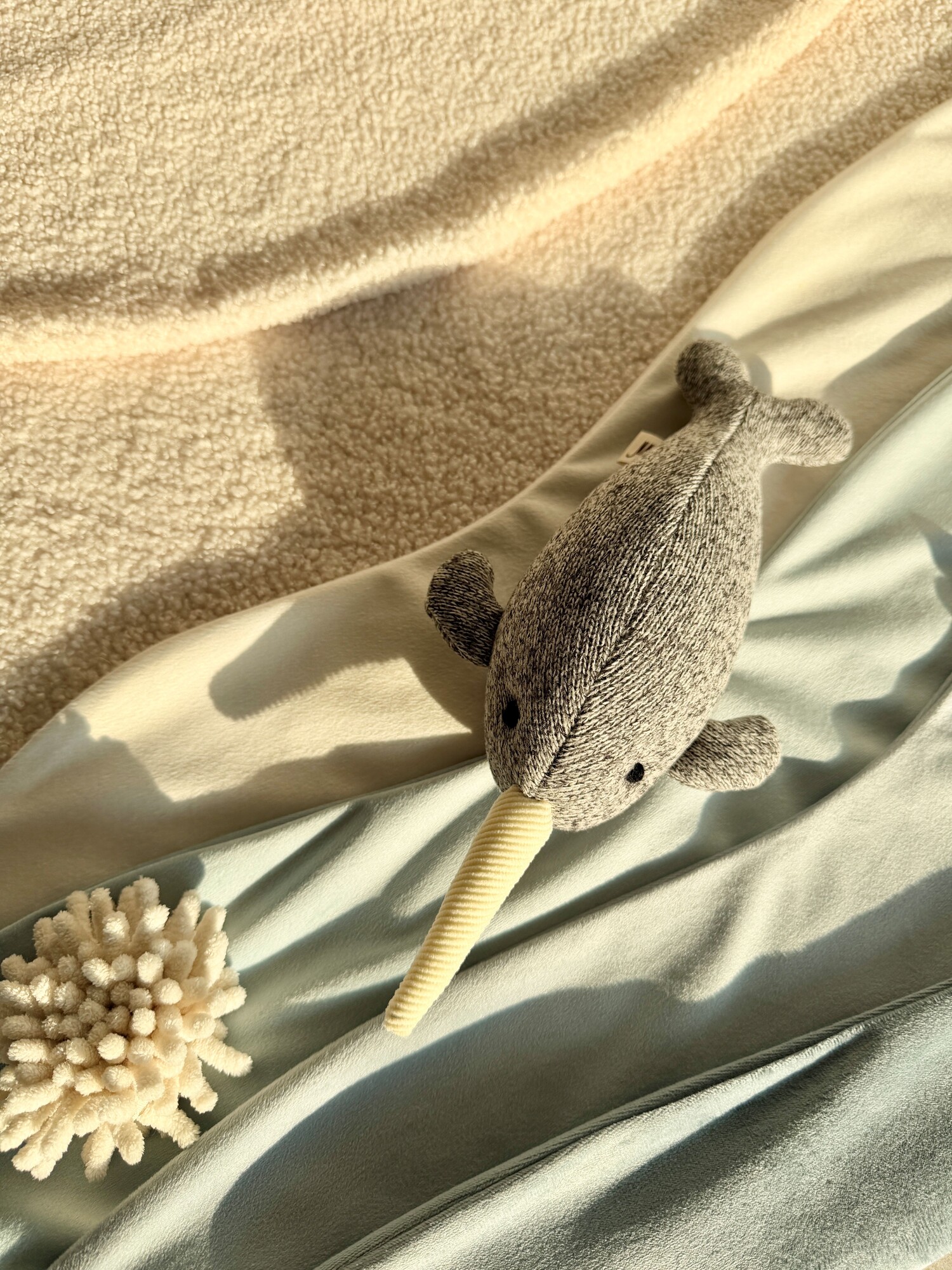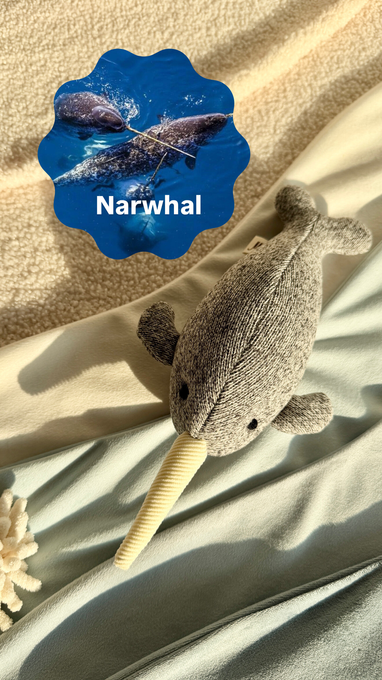 사실은 뿔이 아니고 이빨이라니?! 길쭉한 일각고래를 잡고 터그놀이 해봐요.