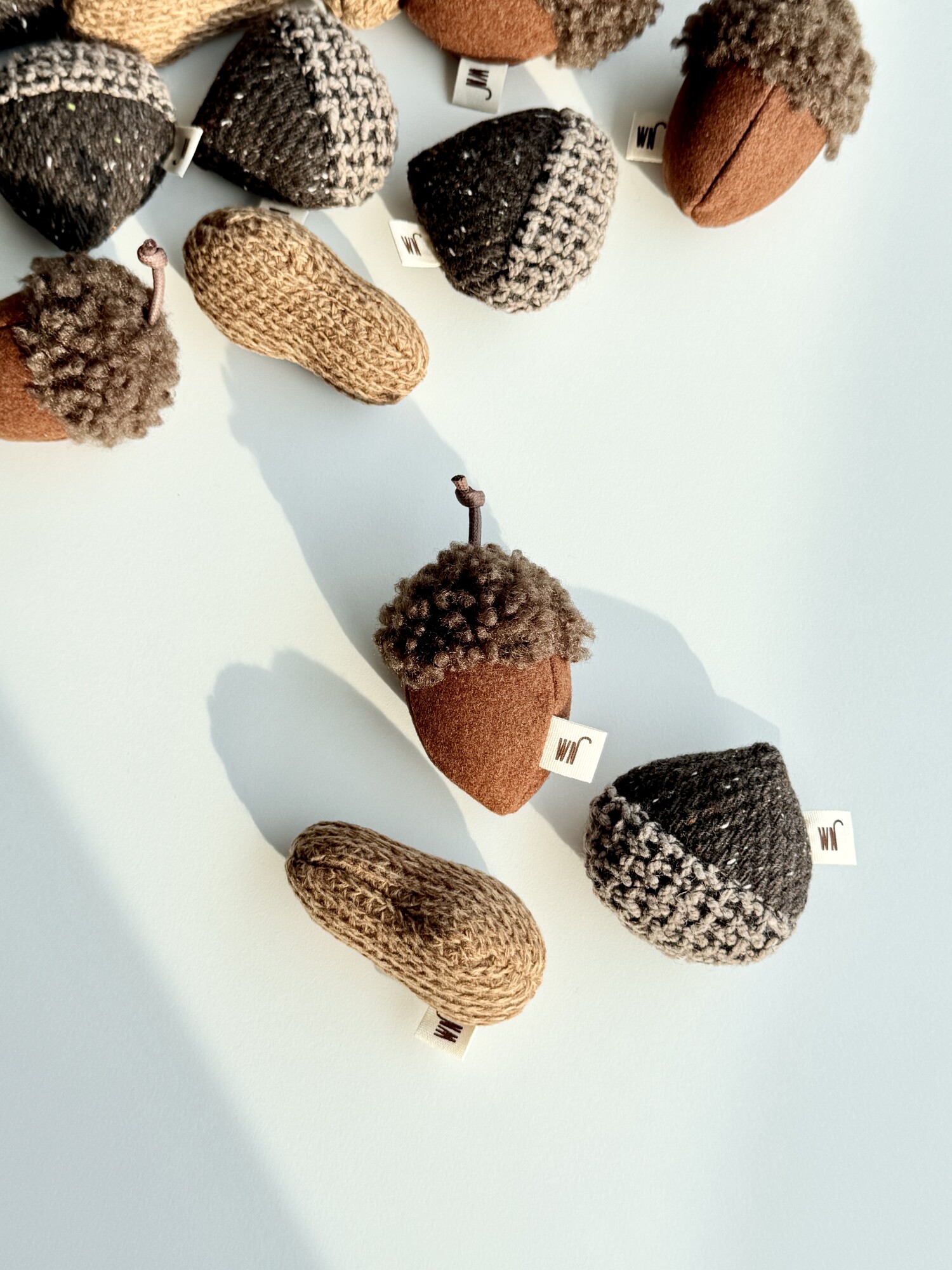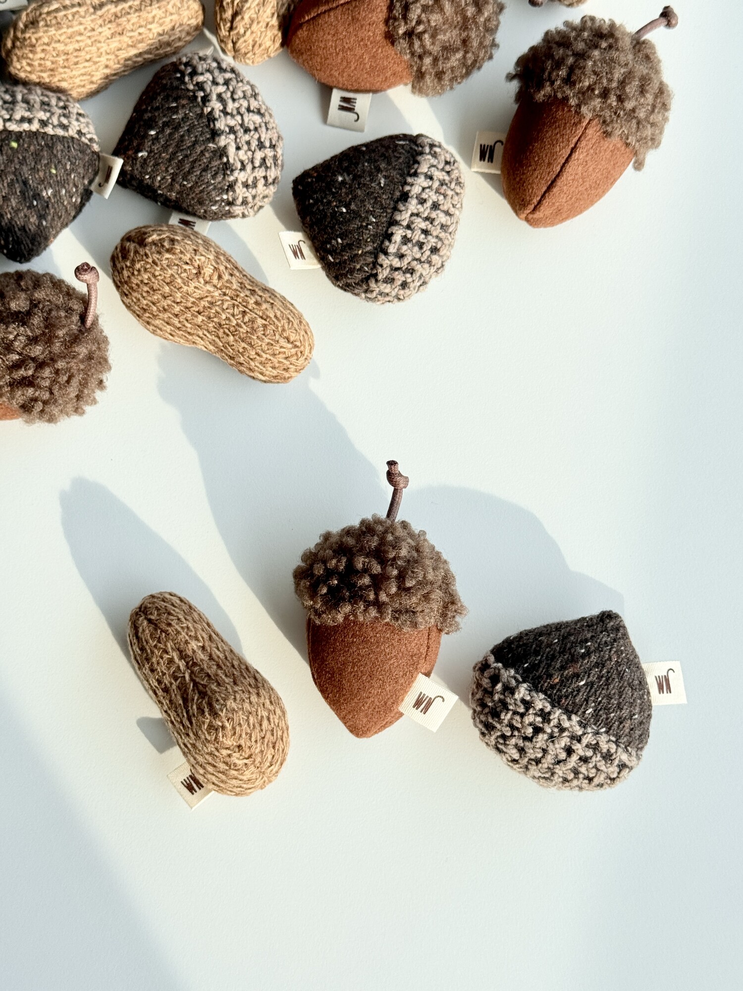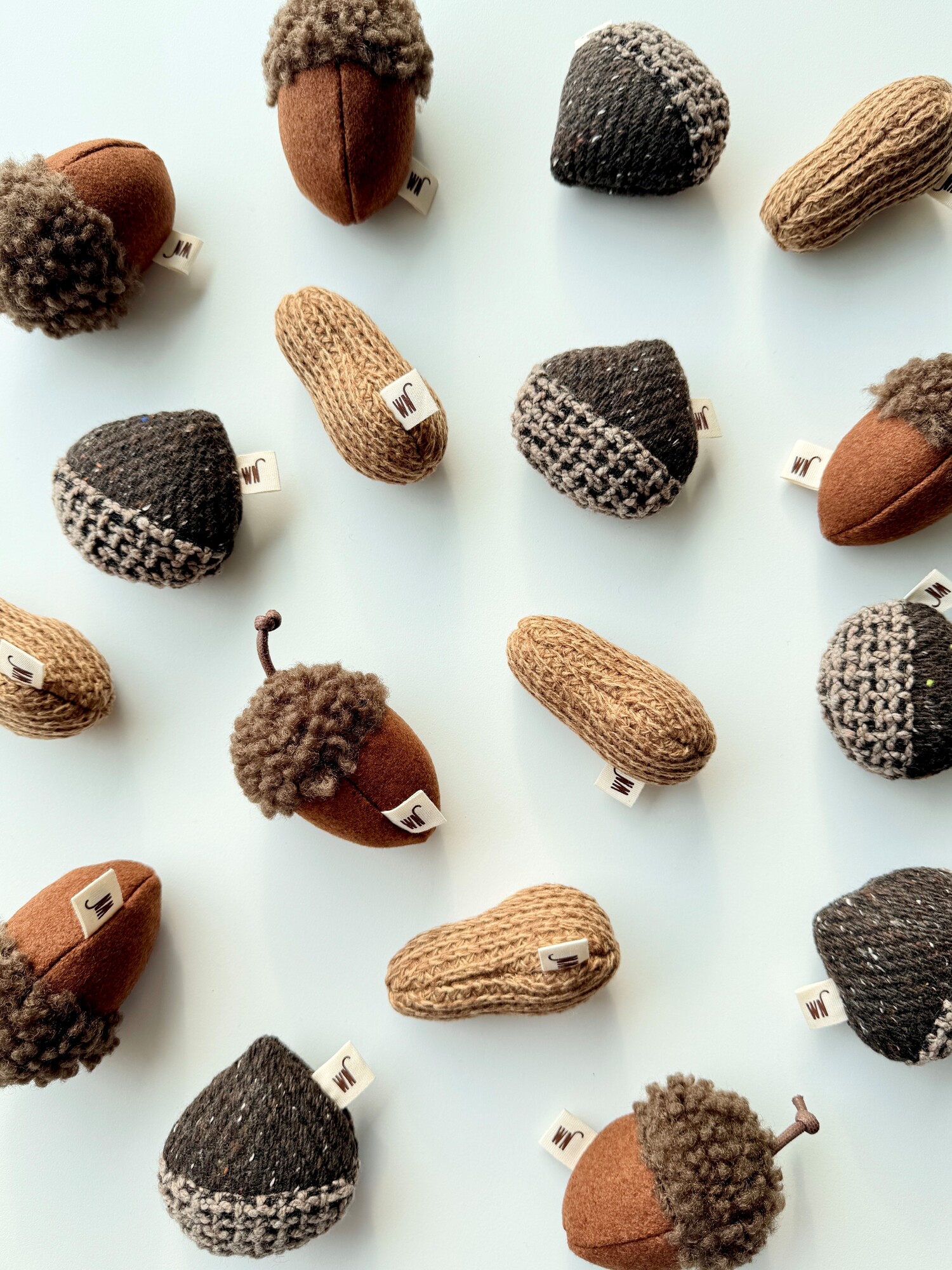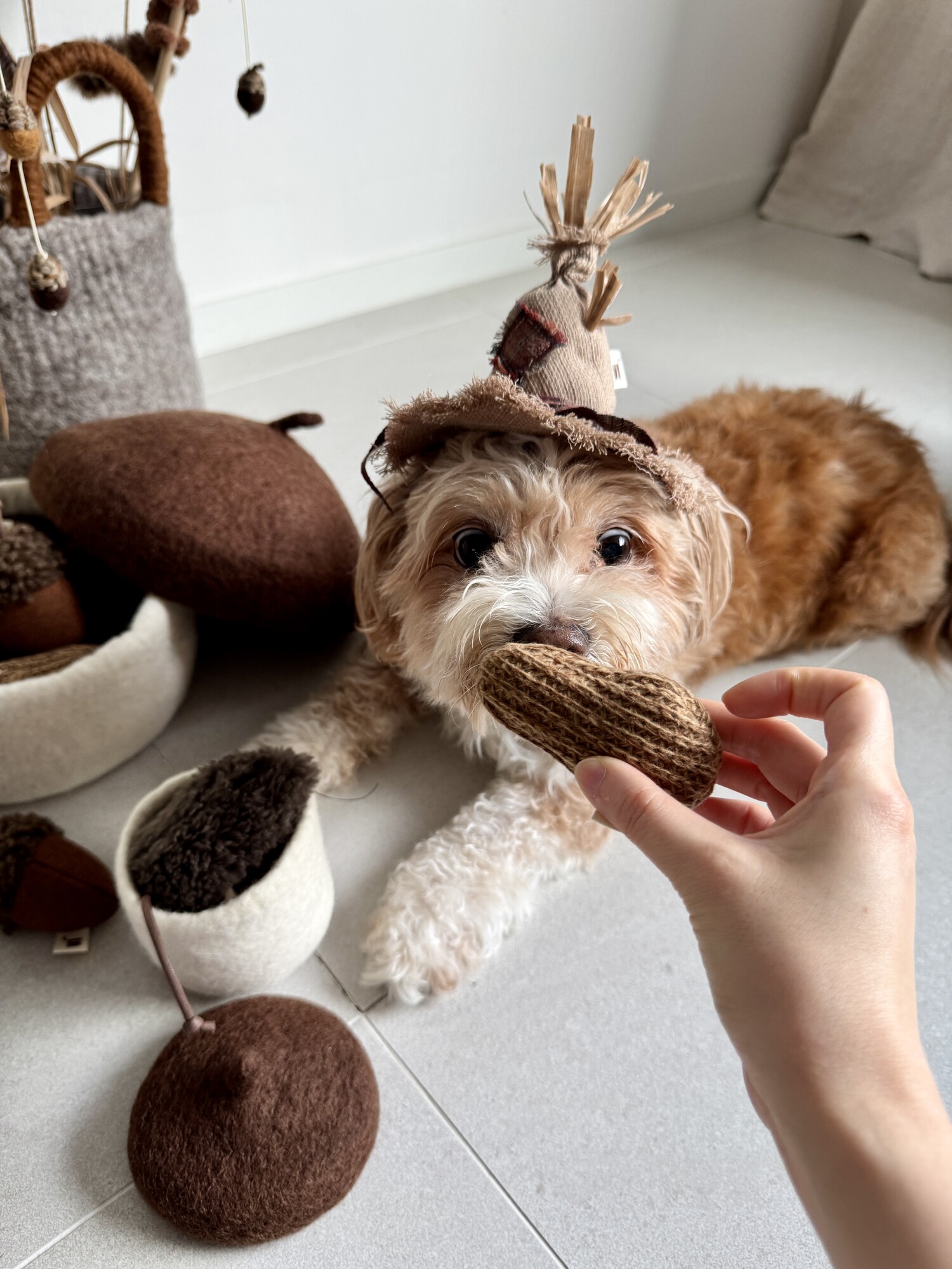 도토리, 밤, 땅콩 견과류 세알 세트 강아지 장난감입니다.