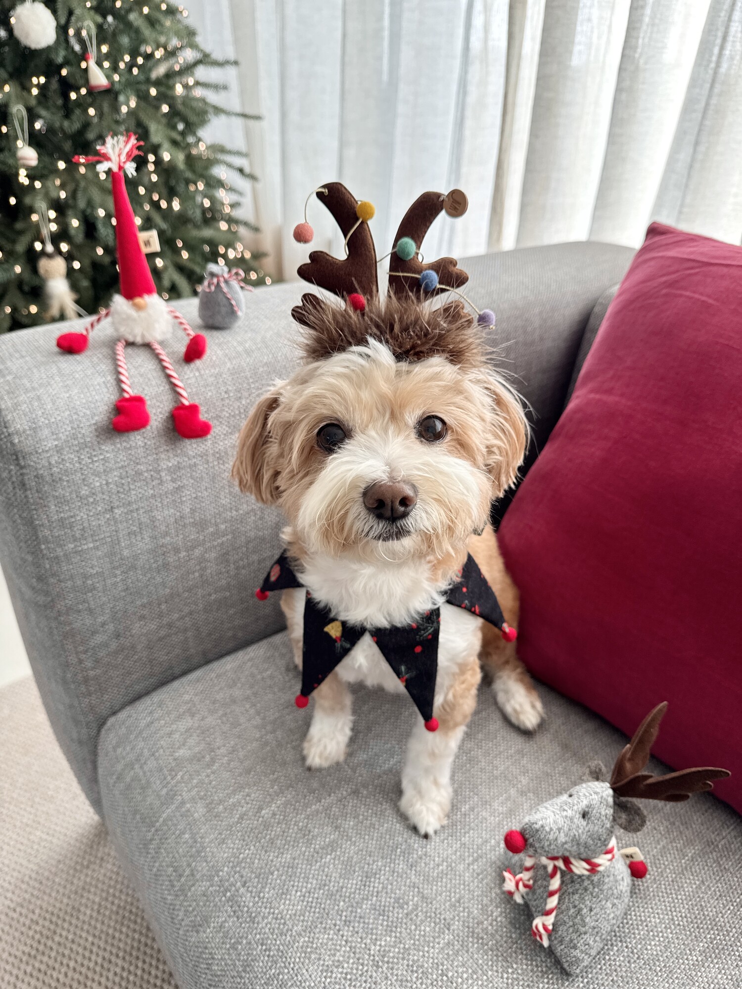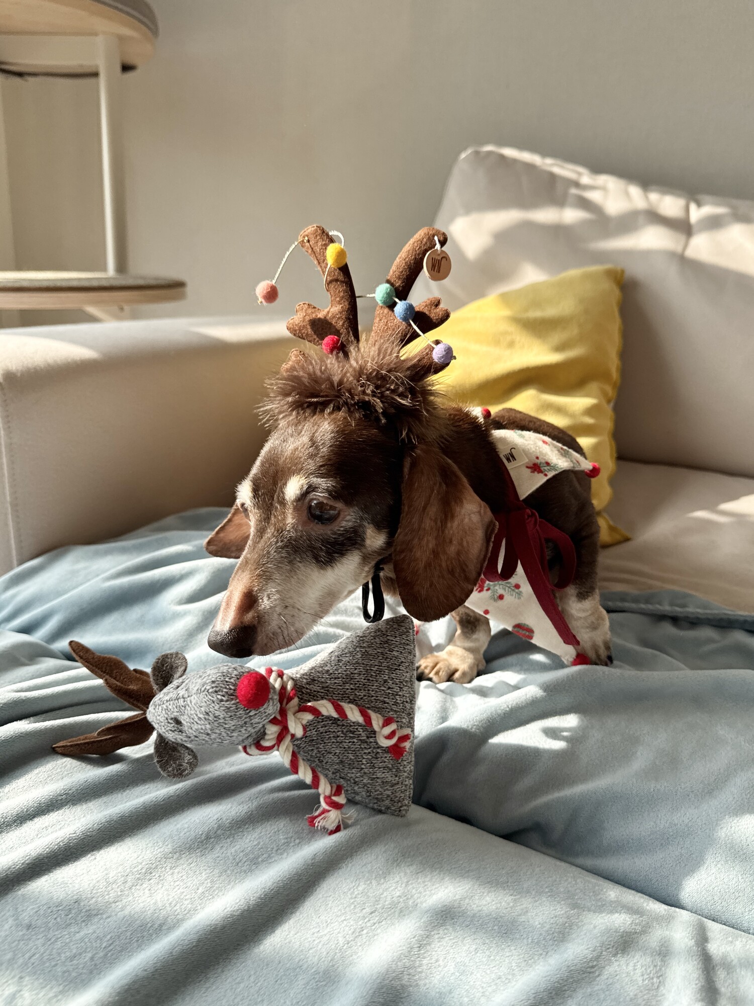딸랑딸랑 종소리 울리는 빨간코 루돌프 강아지 장난감입니다.