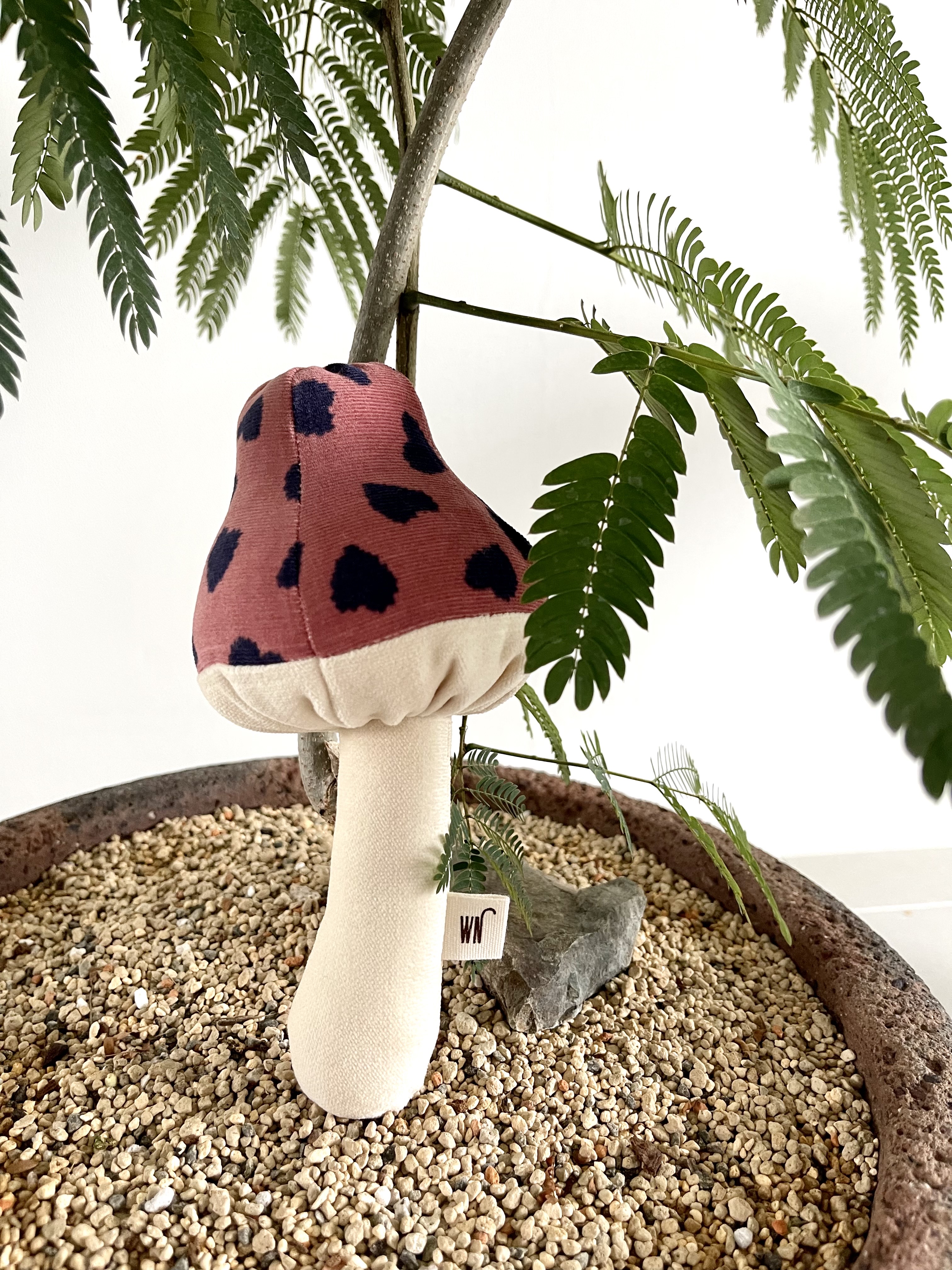 핑크, 블랙, 브라운 세가지 컬러의 중독성 강한 독버섯 강아지 장남감입니다.