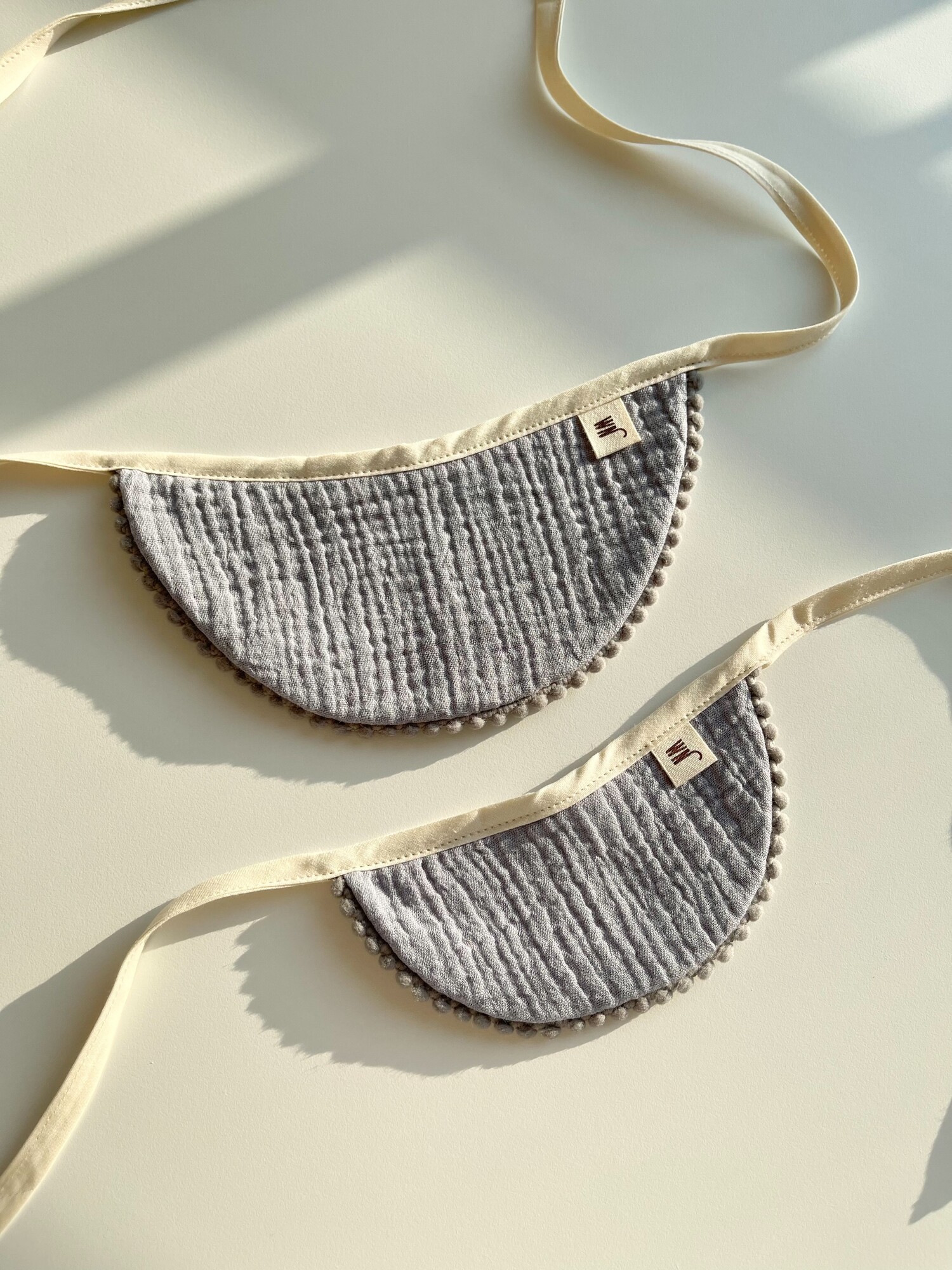 KC인증받은 면 100% 원단을 사용하여 부드럽고 포근한 감촉과 착용감이 편안한 턱받이입니다.