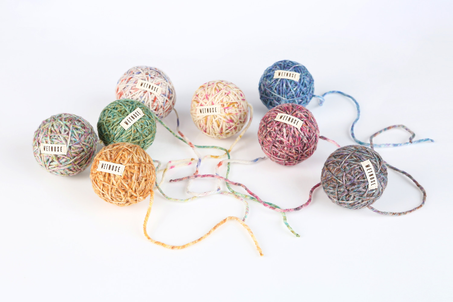 30cm정도 풀린 실가닥과 캣닢향, 마따따비향이 스며들어 흥미를 유발합니다.