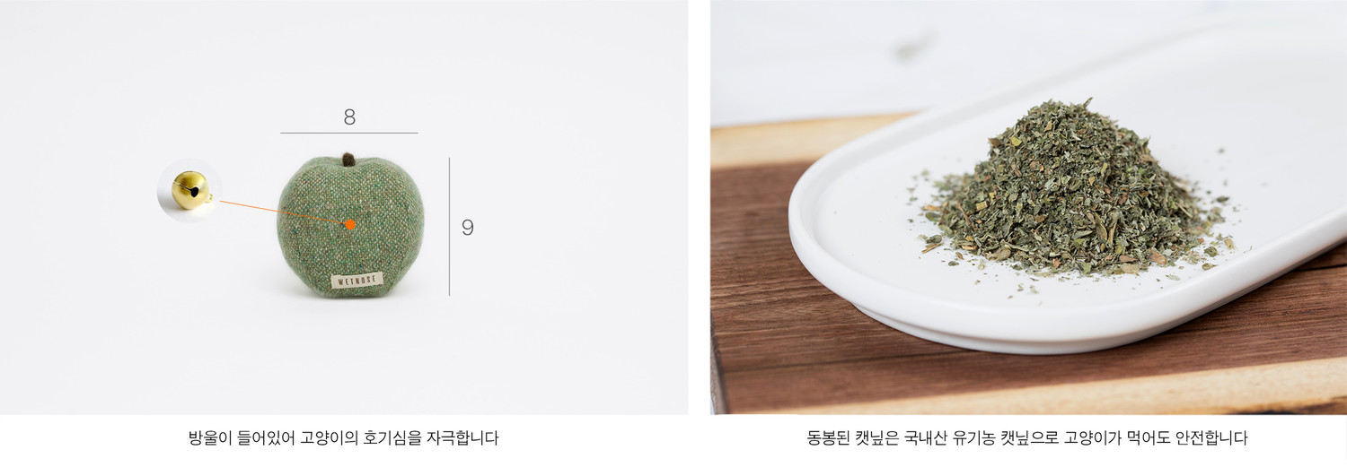 애플은 국내산 유기농 캣닢이 들어있는 캣닢쿠션입니다.