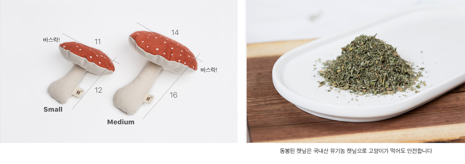 머쉬룸은 국내산 유기농 캣닢이 들어있는 캣닢쿠션입니다.