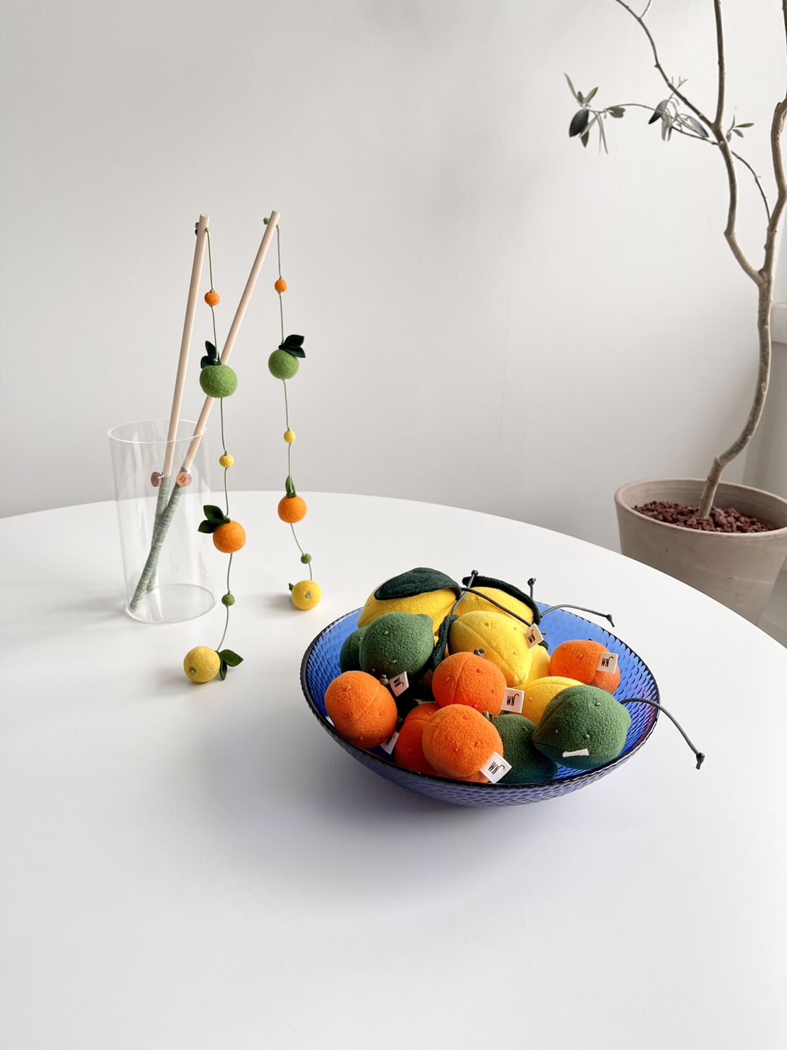 주렁주렁 달린 양모볼은 천연재료로 색을 낸 뉴질랜드산 100% Pure Wool을 사용하여 안심하고 건네어 주세요.
