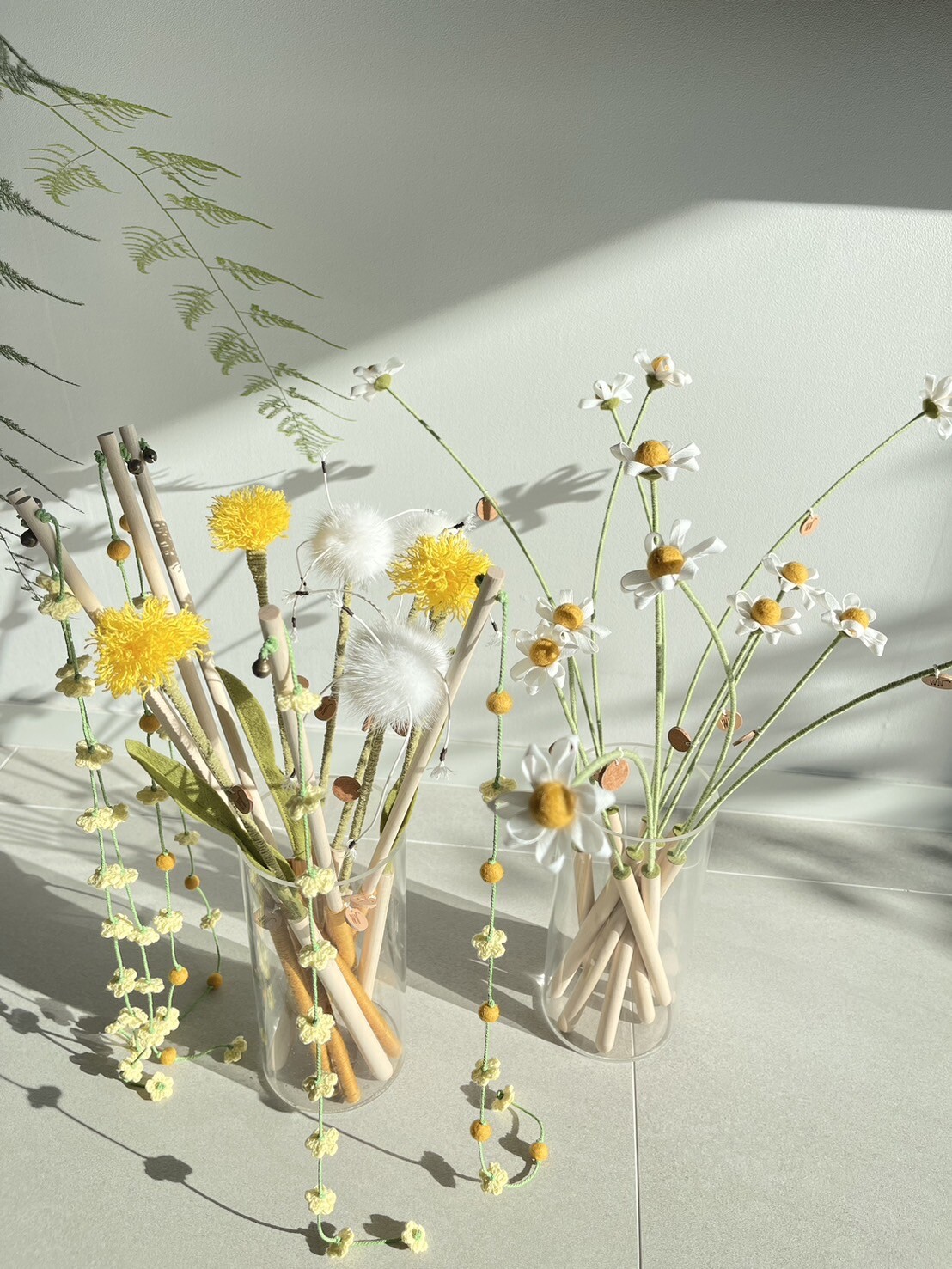 양모볼, 소나무막대, 면리본, 울털실, 가죽라벨, 스텐와이어