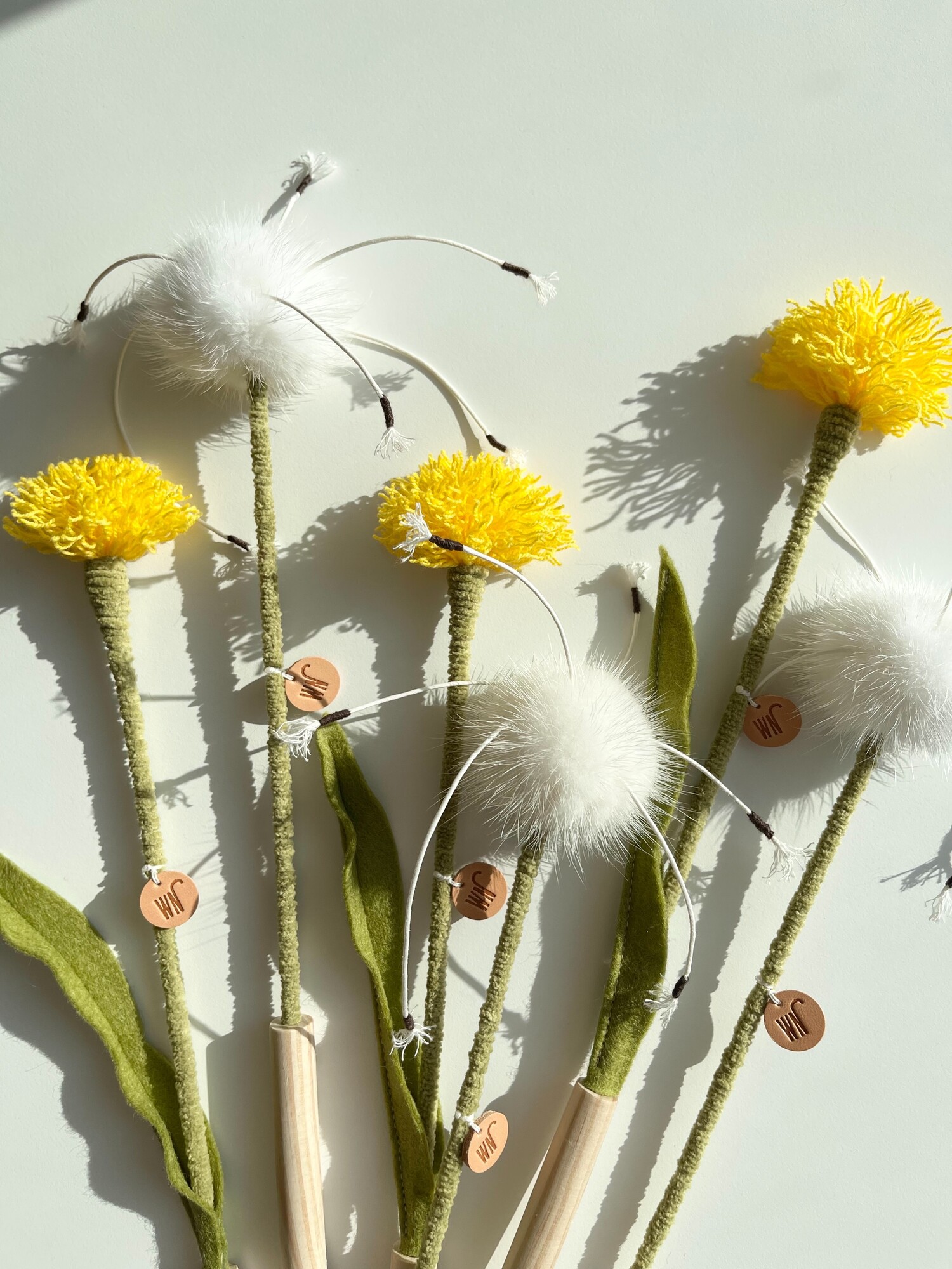 고양이가 가장 선명하게 볼 수 있는 샛노란 컬러와 흩날리는 듯한 민들레 홀씨는 흥미를 유발하며