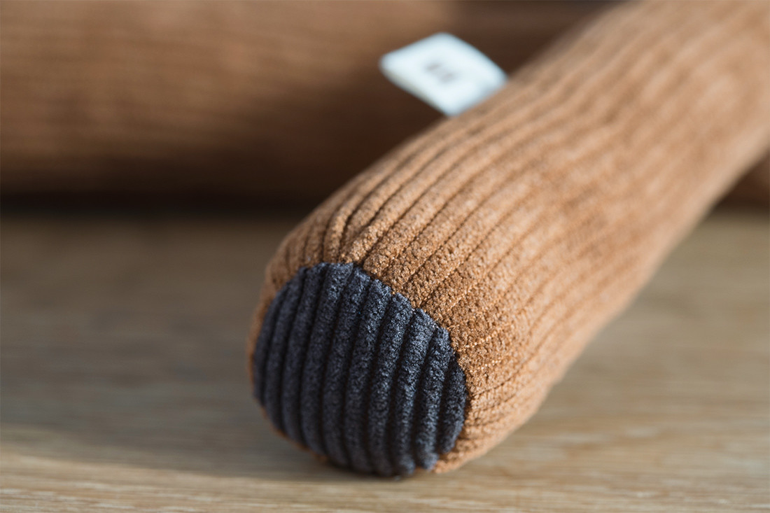 도톰하고 볼록한 골이 있는 코듀로이 원단이며 삑삑이가 내장되어 있어서 강아지의 흥미를 유발합니다.