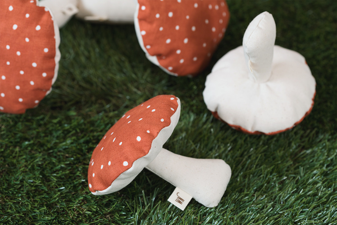 버섯의 줄기부분을 잡고 터그놀이하기 좋아 욕구해소, 스트레스 해소에 도움을 줍니다.