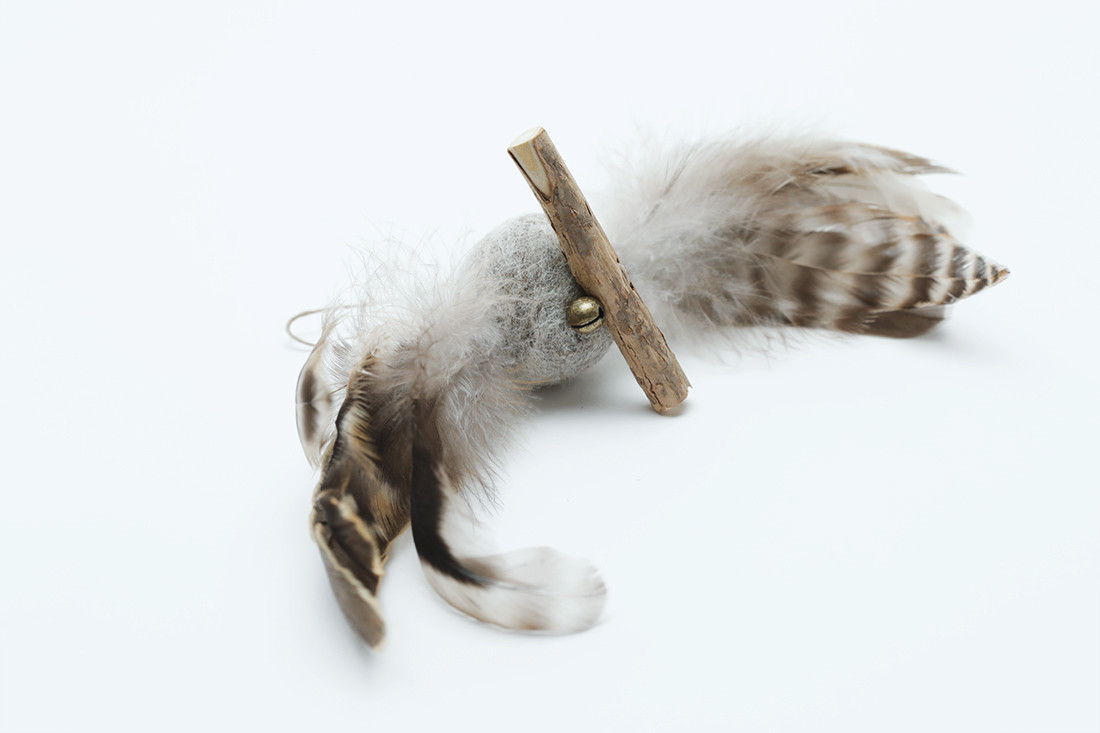 천연재료로 색을 낸 뉴질랜드산 100% Pure Wool, 천연깃털, 개다래 나무, 딸랑거리는 방울 등 고양이가 좋아하는 요소들로 구성되어 있습니다.