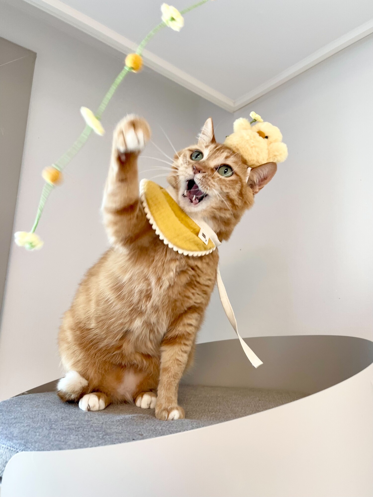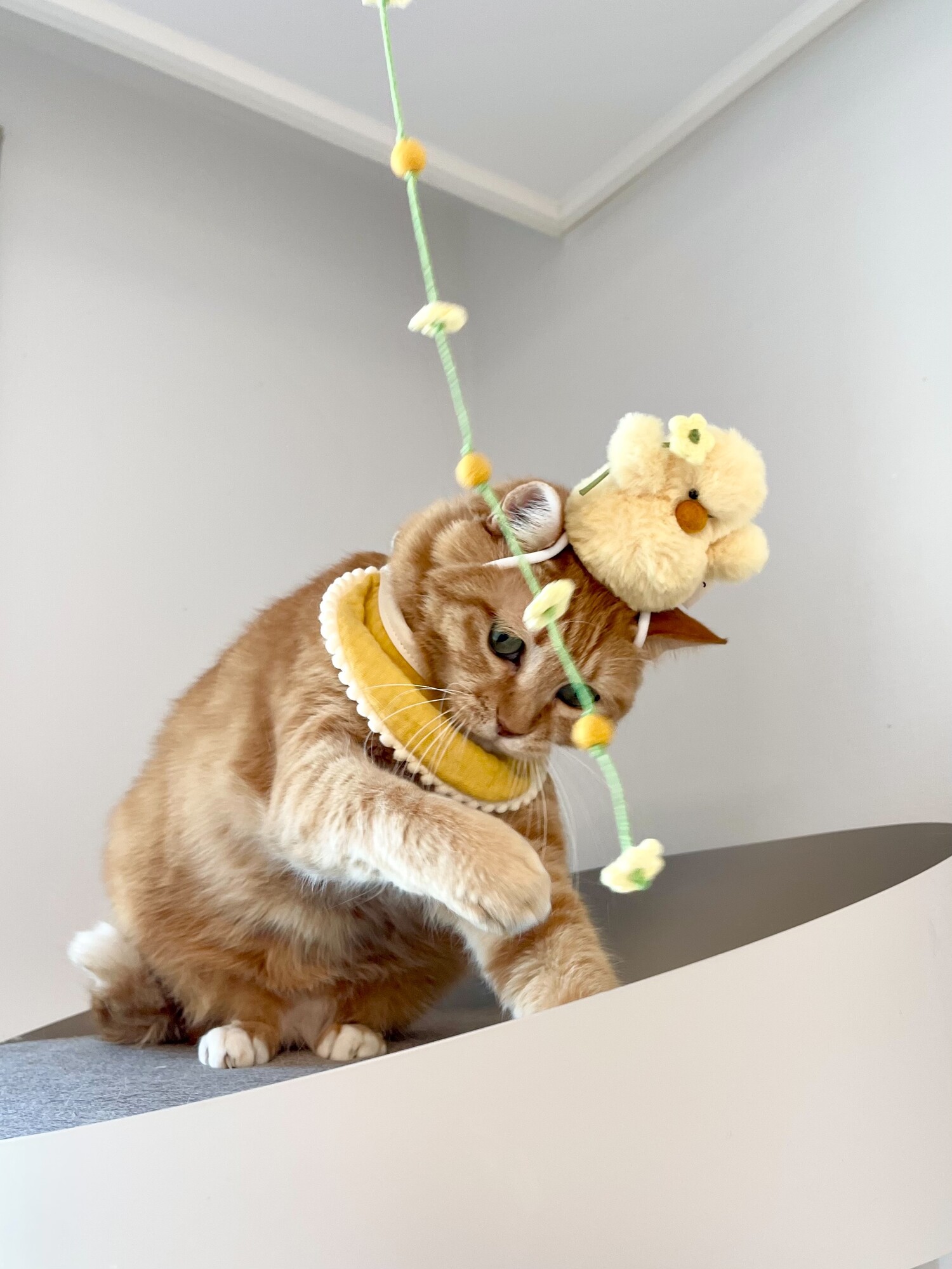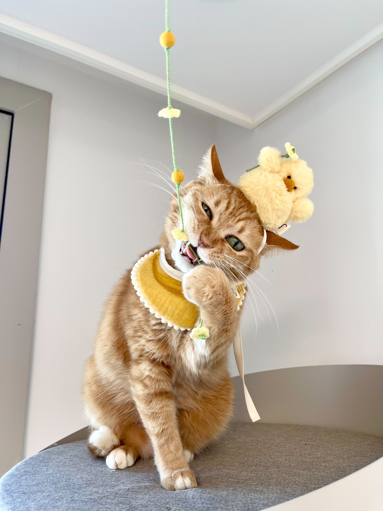 고양이가 끈, 털, 방울 등 장난감을 삼키지 않도록 항상 주의해주세요.