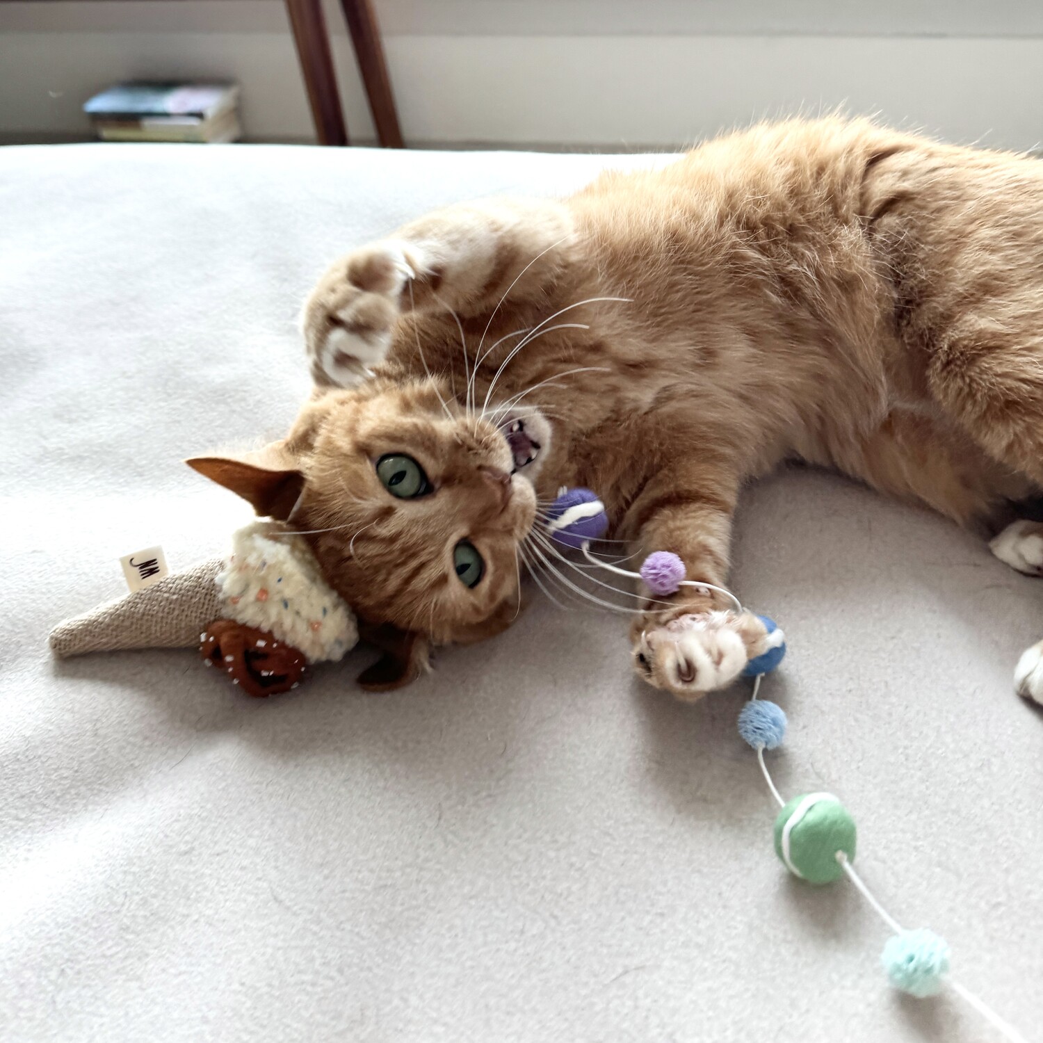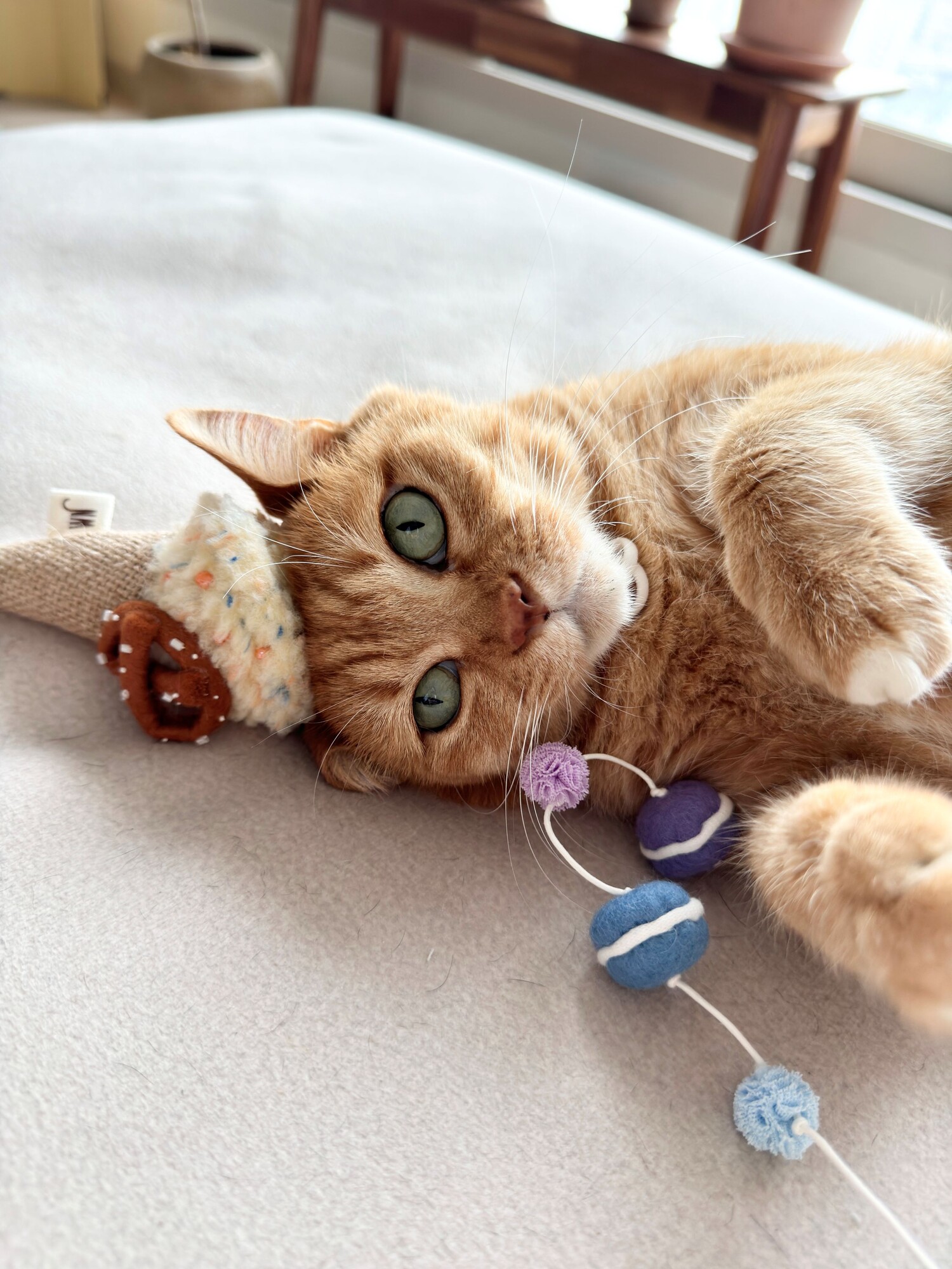 고양이가 장난감을 삼키지 않도록 항상 주의해주세요.