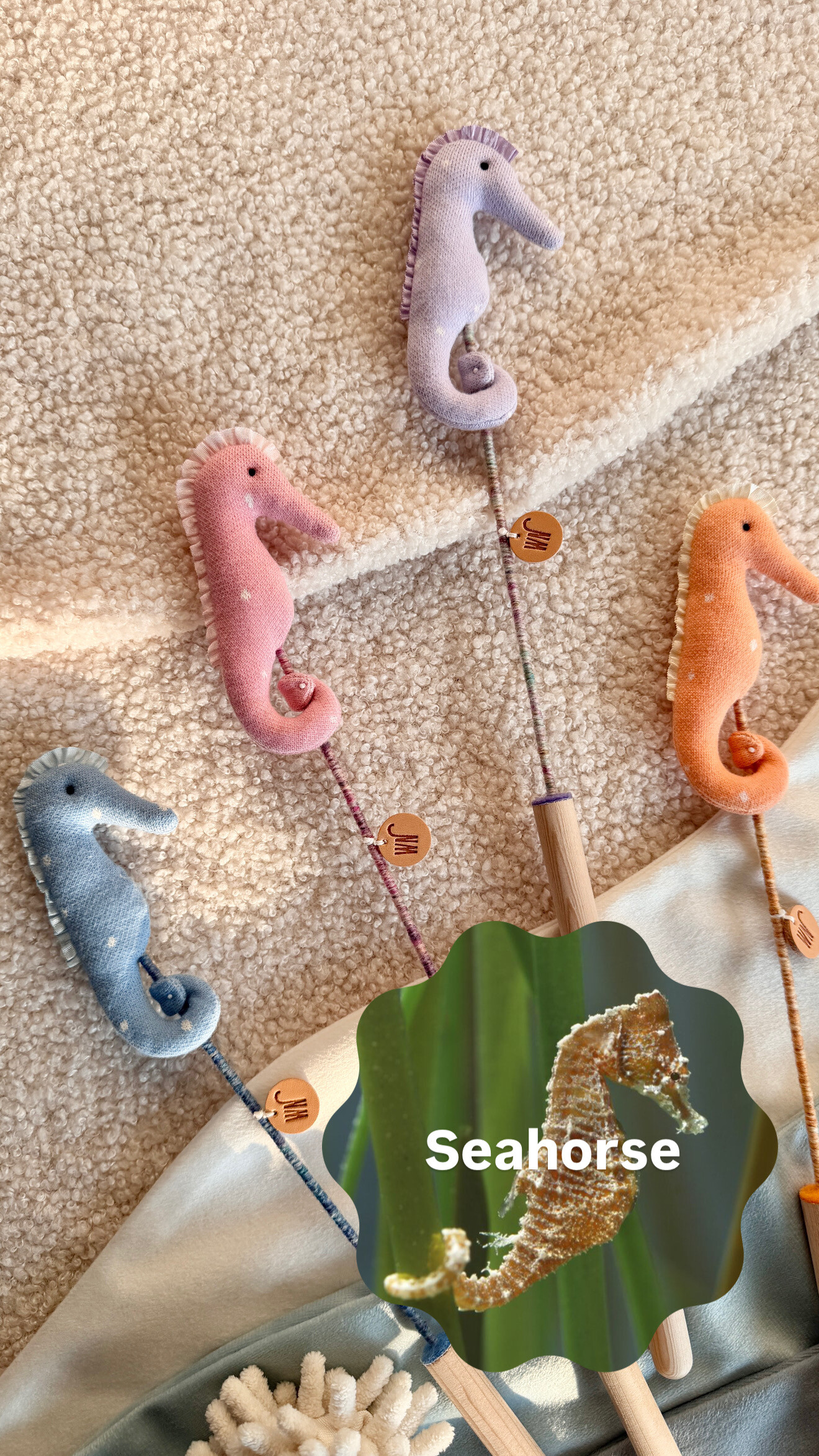파스텔 톤의 사랑스러운 해마 친구는 놀이 시간뿐 아니라 공간에 두어도 귀여운 포인트가 되어줍니다.