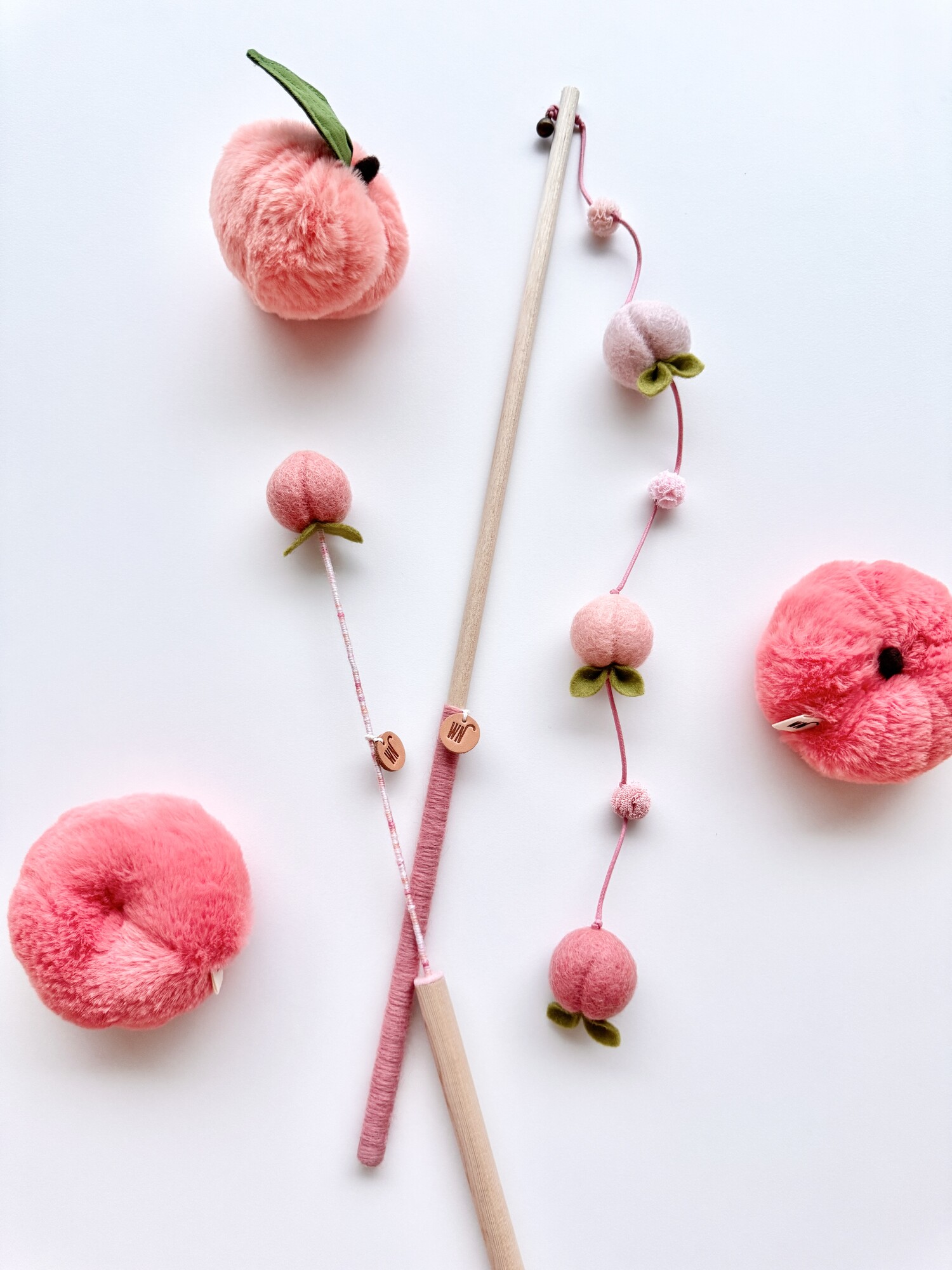 탐스러운 복숭아가 달려있는 복숭아 낚싯대입니다.