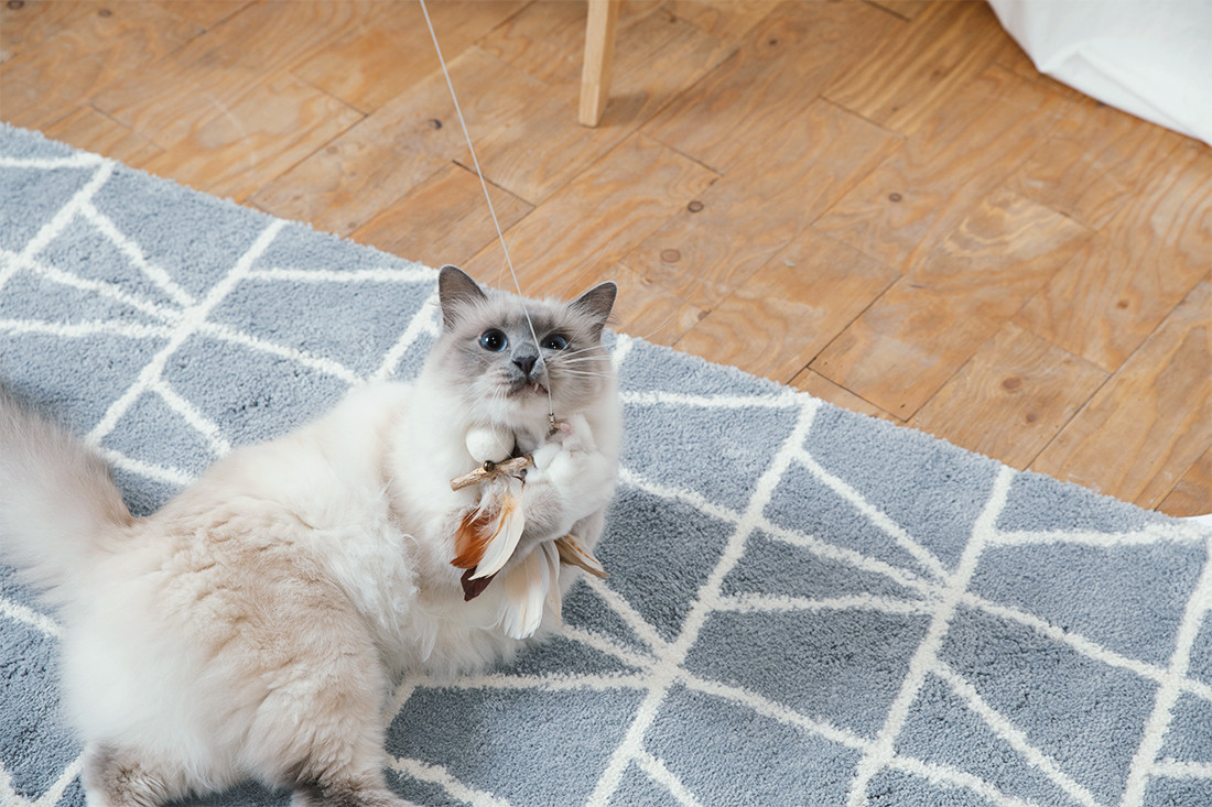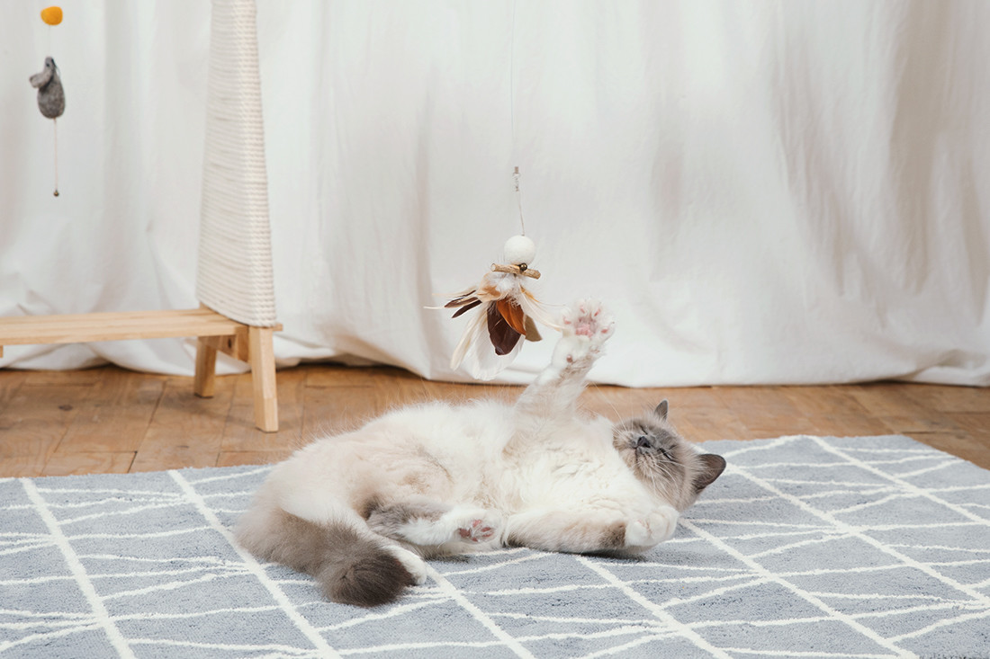 고양이가 끈, 털, 방울 등 장난감을 삼키지 않도록 항상 주의해주세요.