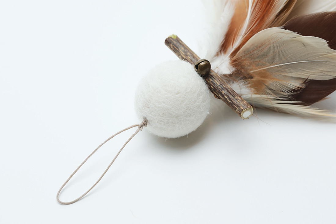 천연재료로 색을 낸 뉴질랜드산 100% Pure Wool, 천연깃털, 개다래 나무, 딸랑거리는 방울 등 고양이가 좋아하는 요소들로 구성되어 있습니다.