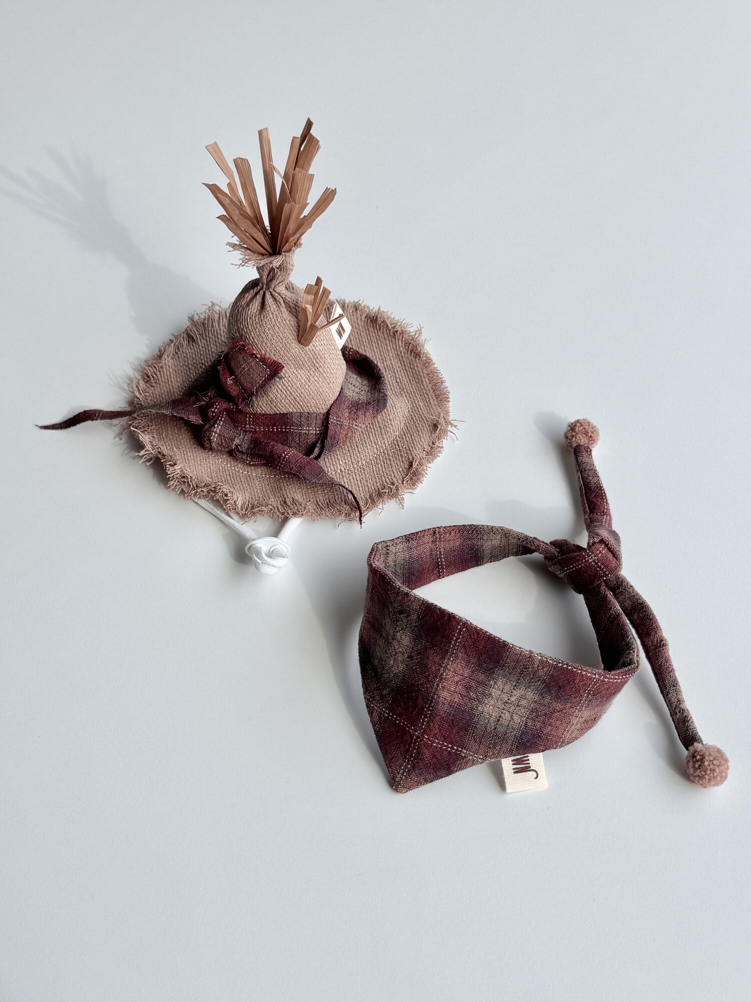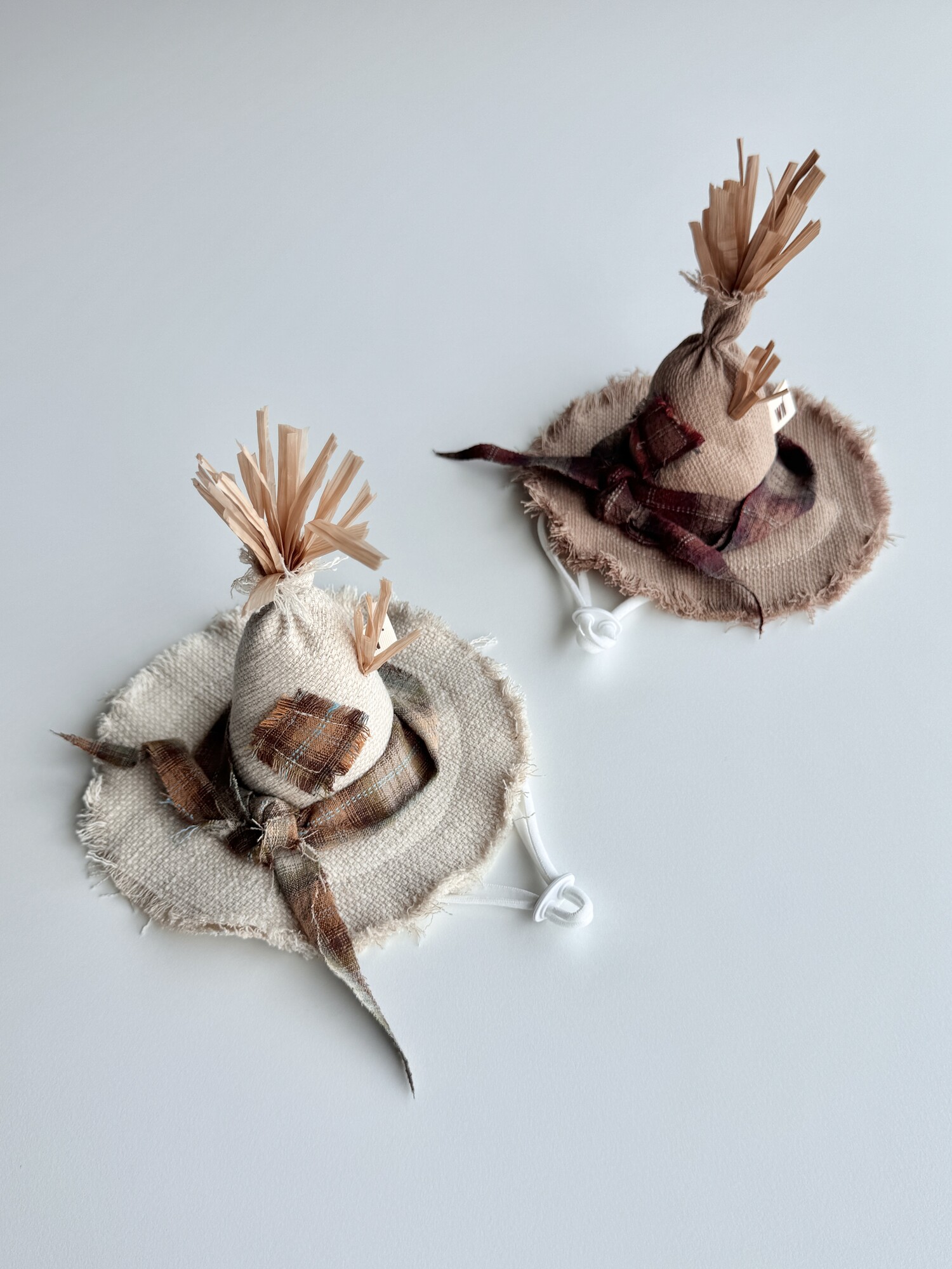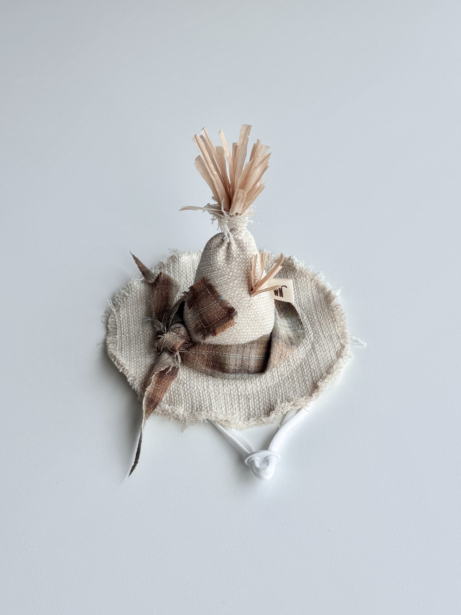 밀짚이 삐죽삐죽 삐져나온 허수아비 모자입니다.