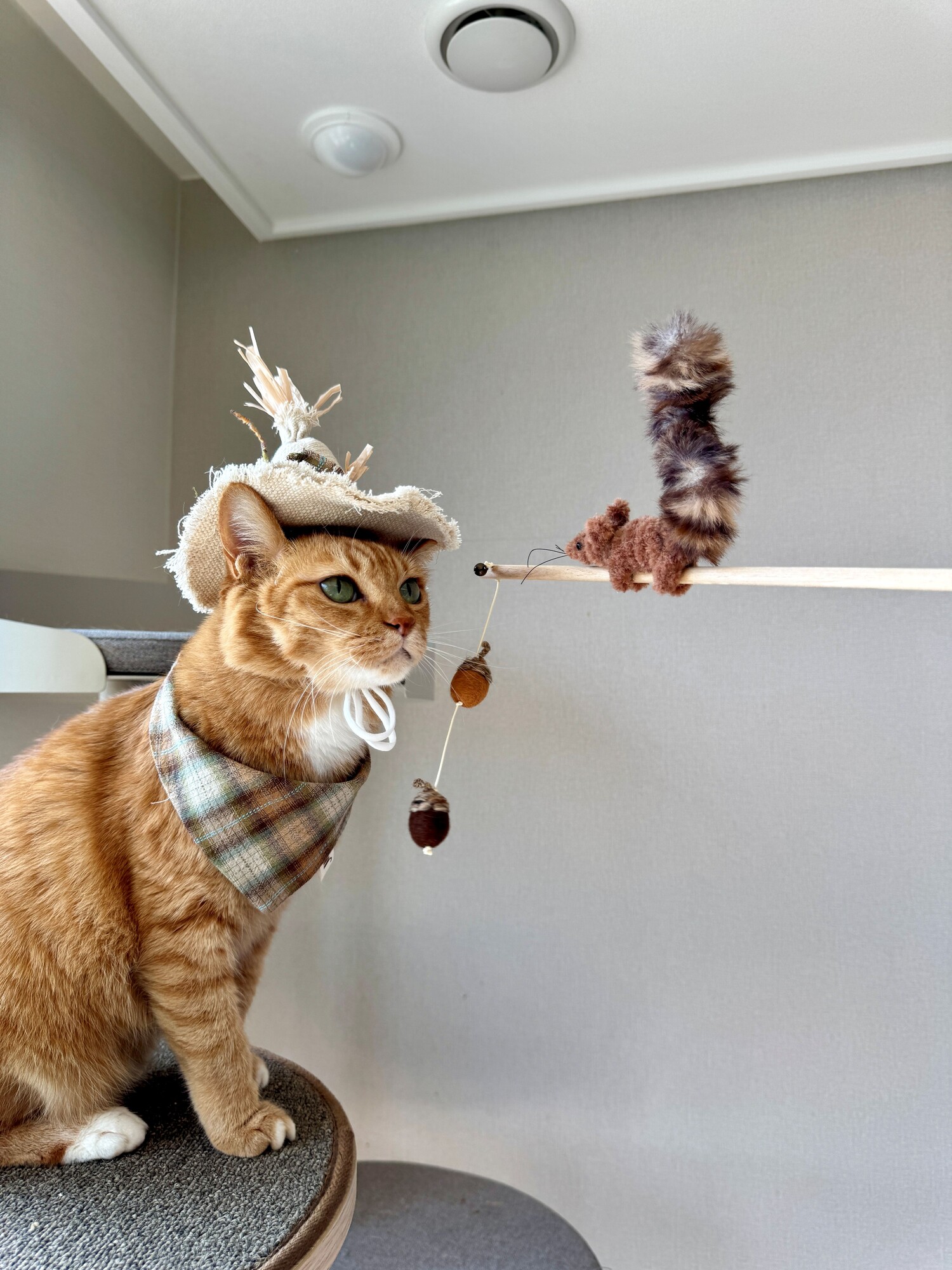 고양이가 끈, 털, 방울 등 장난감을 삼키지 않도록 항상 주의해주세요.