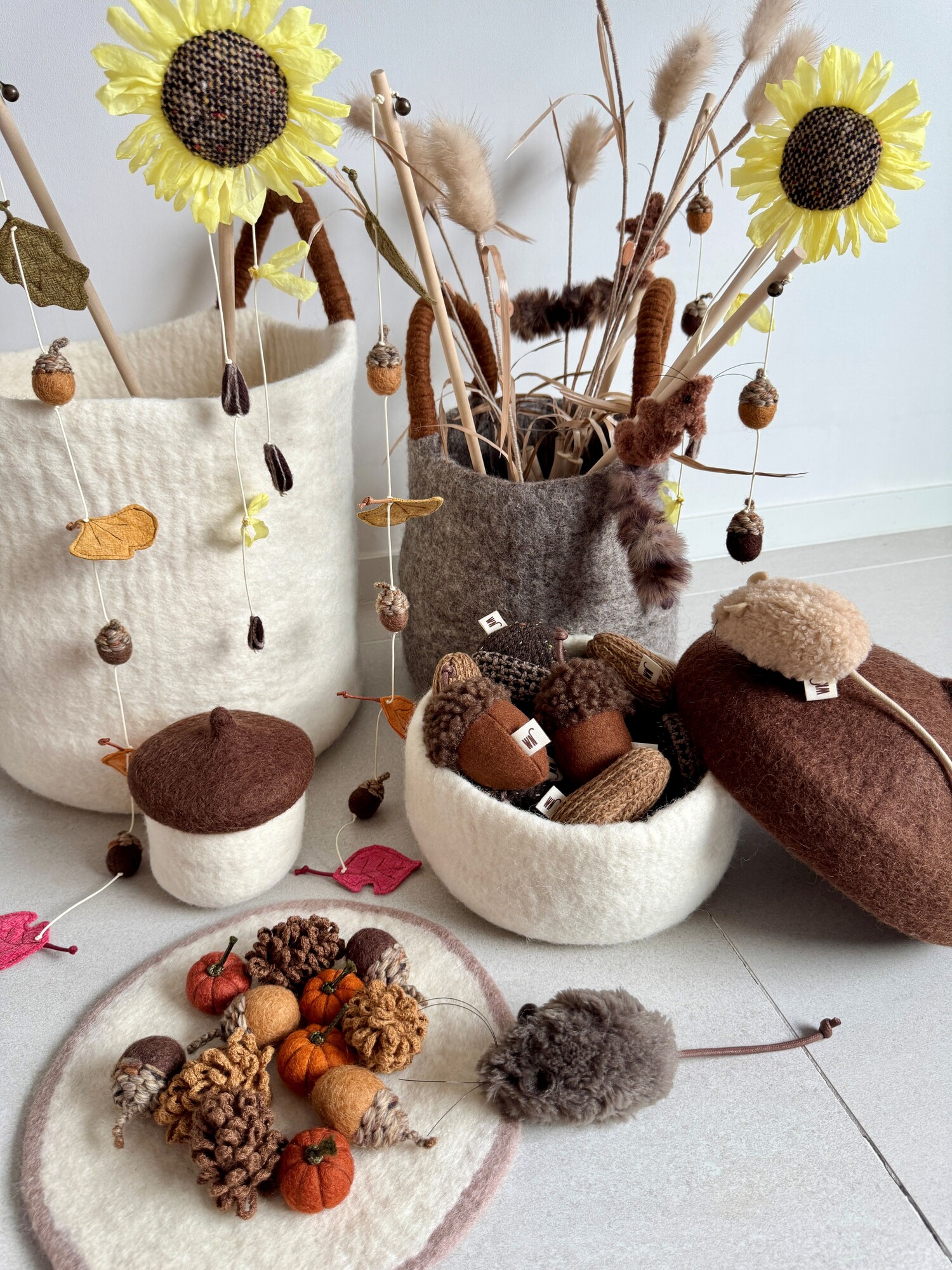 레이스, 울원단, 양모, 솜, 면끈, 자작나무막대, 울털실, 가죽라벨