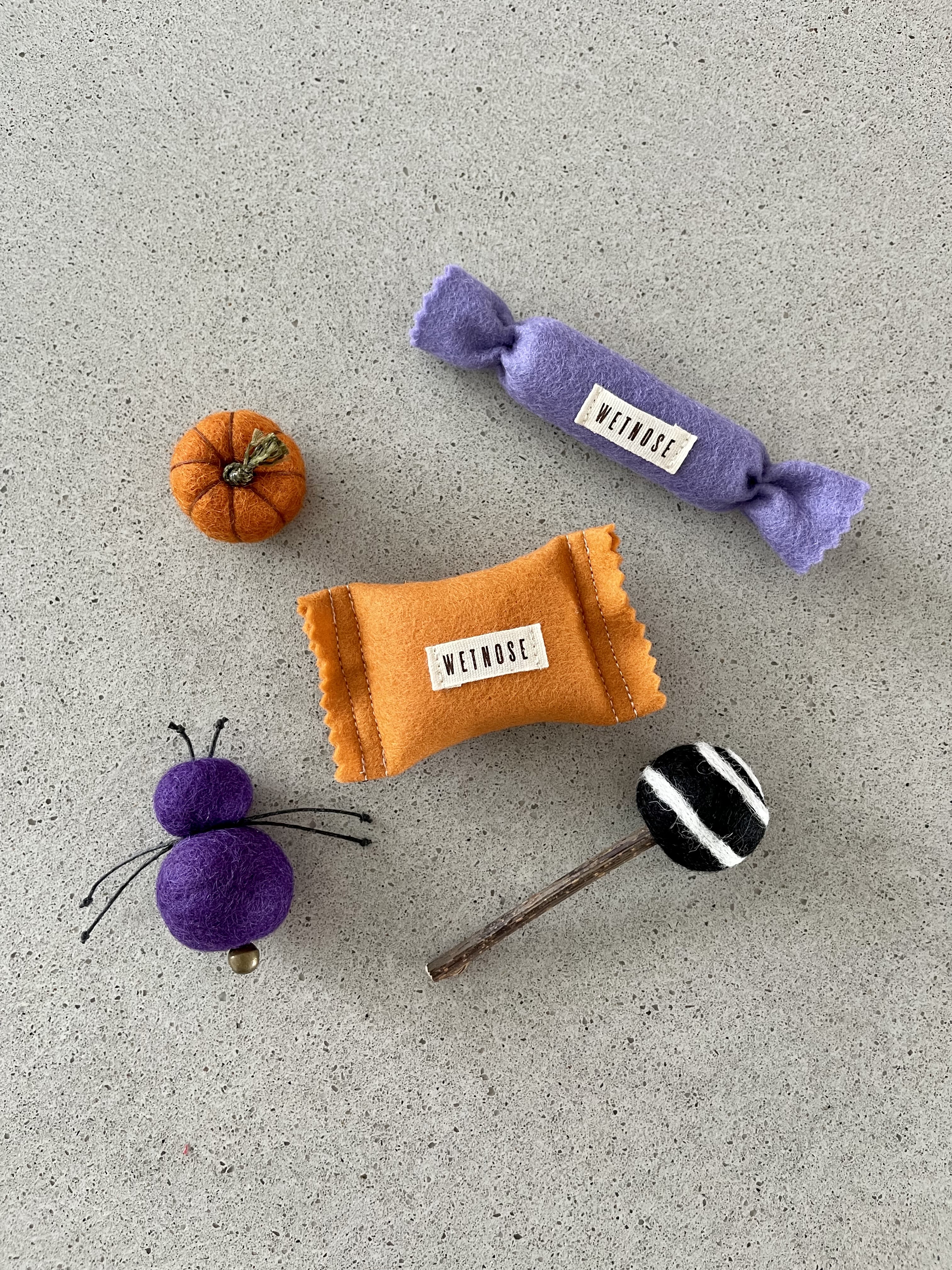 미니호박, 캣닢이 든 사탕, 마따따비가 콕 박힌 막대사탕, 벌레 등 총 5개 세트입니다.