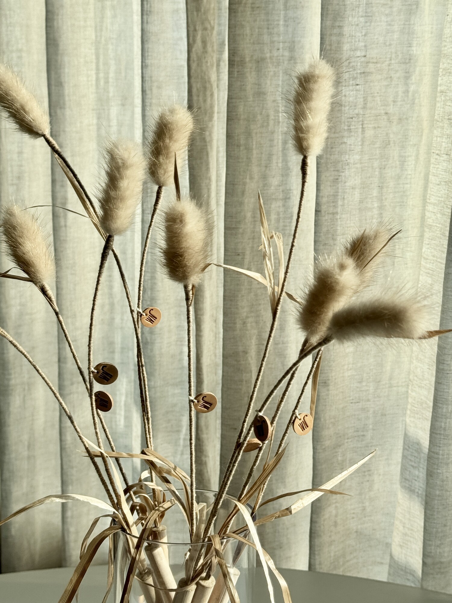 라피아실, 퍼트리밍, 소나무막대, 울털실, 가죽라벨, 스텐와이어