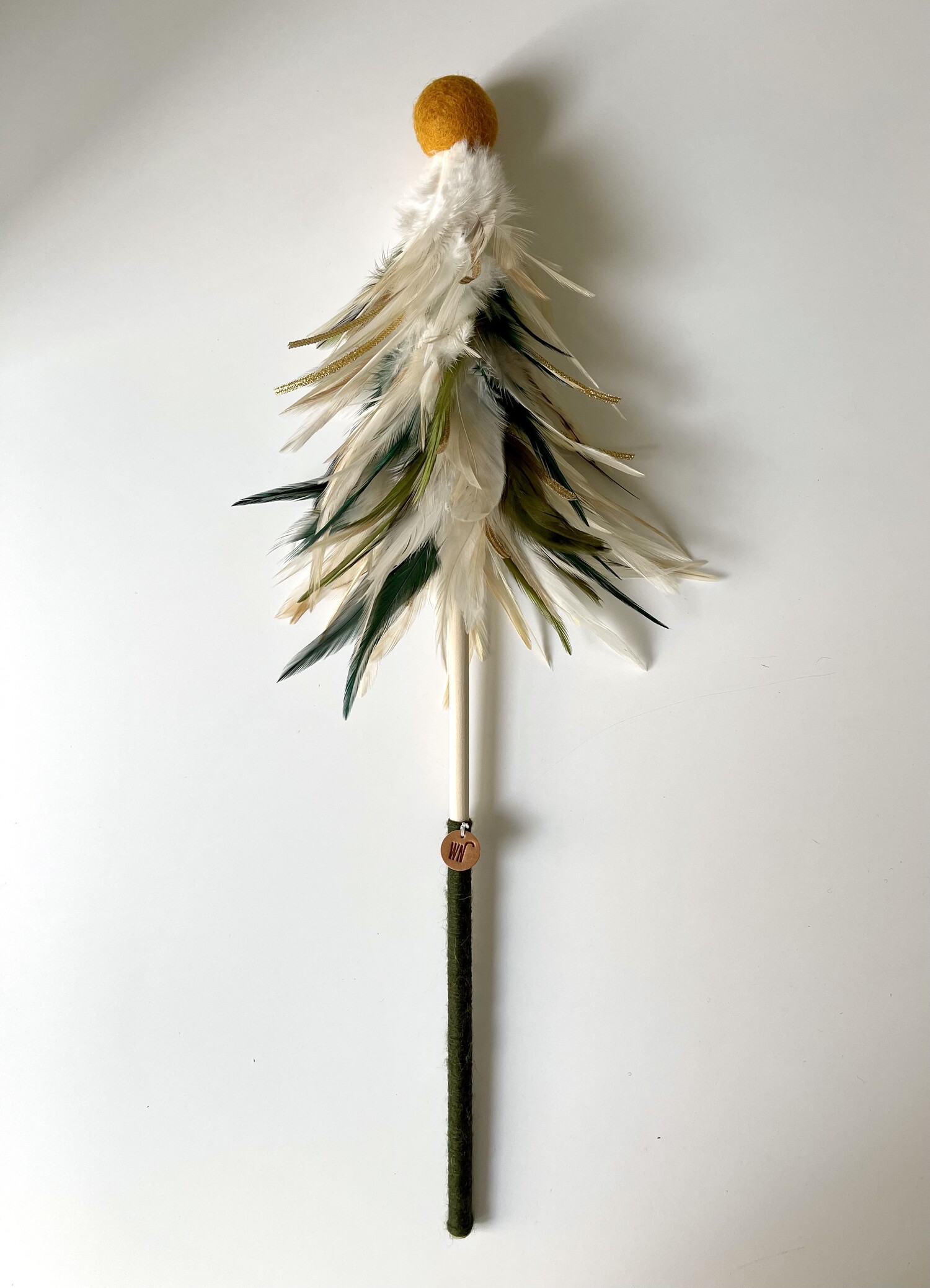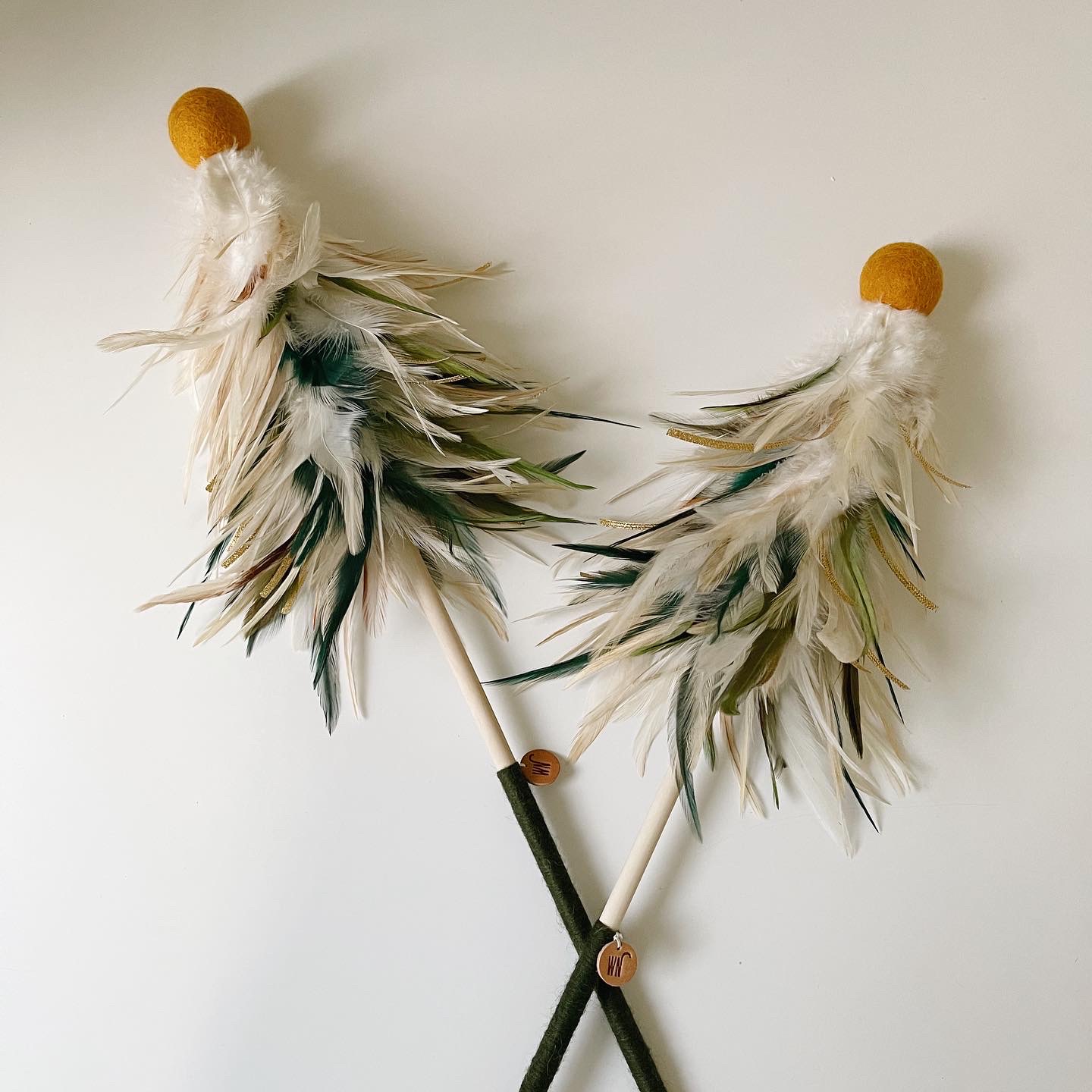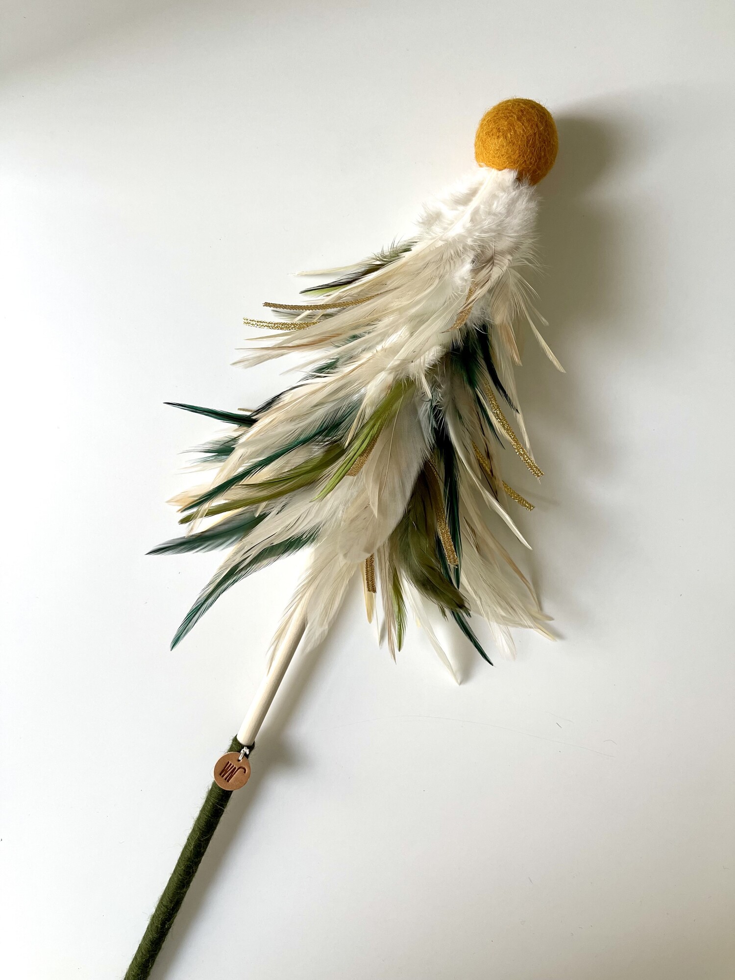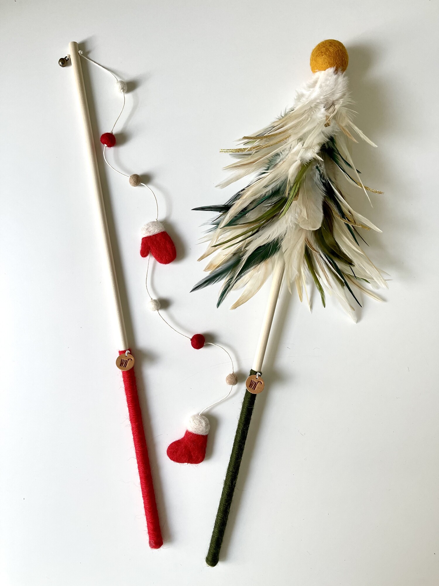 양모볼, 천연깃털, 자작나무막대, 방울, 울털실, 가죽라벨