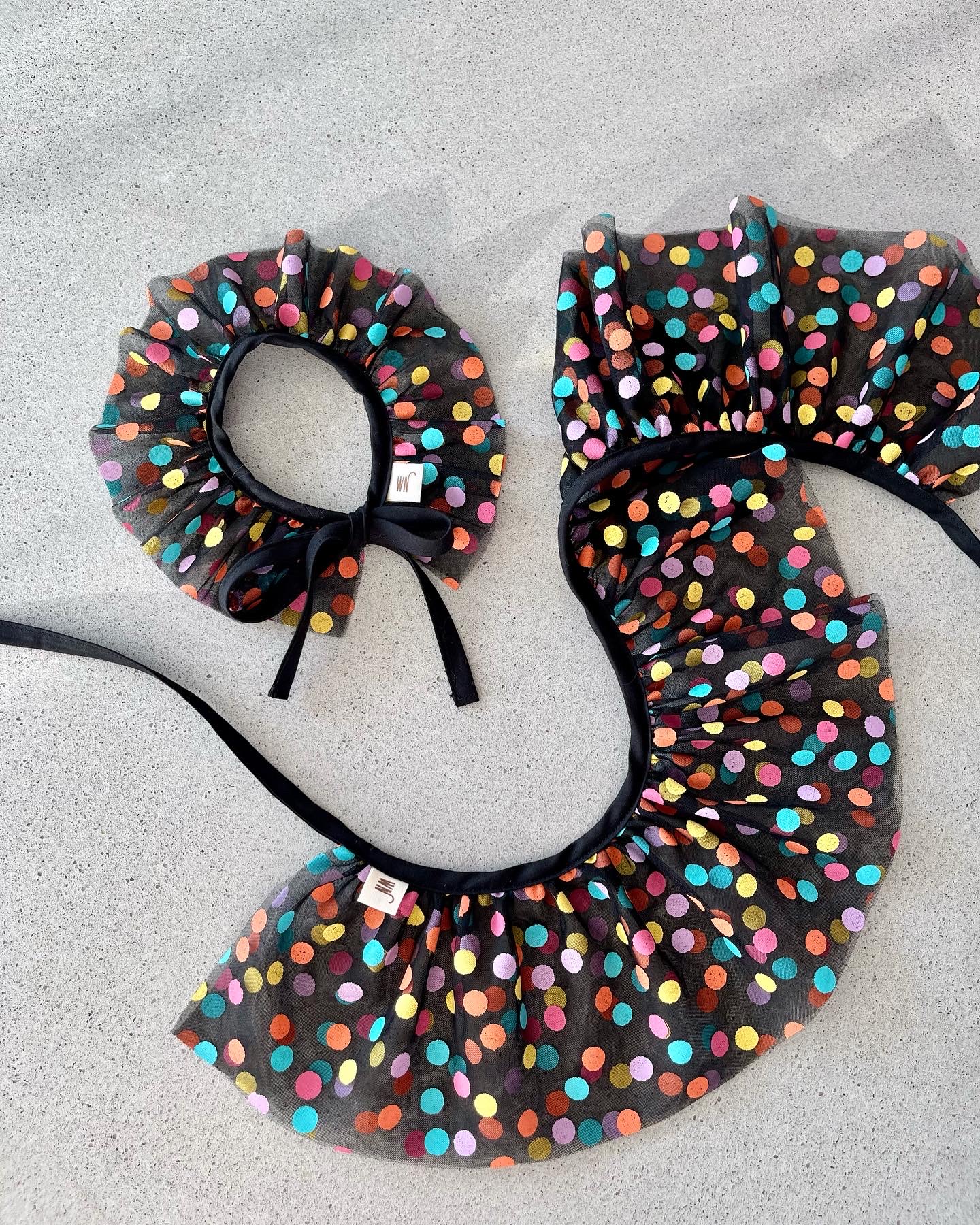 알록달록 도트무늬가 매력적인 마녀 케이프입니다.